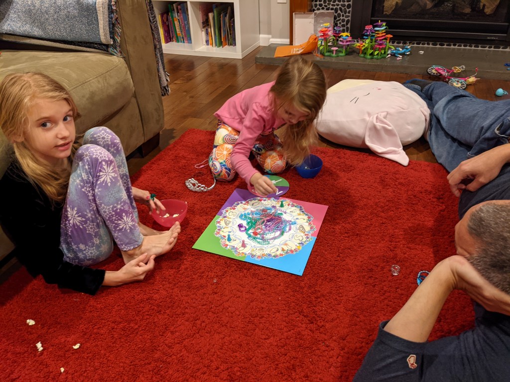 September 22, 2021: We were not expecting daddy to tell us he was going to the cottage tomorrow. It’s not fair. We want to go too. He promised us though that he is not going to have a good time without us. He is going to do work under the cottage in the cold and rain. And he promised he is not going swimming either. We are ok with that. We are going to miss him a lot, so we made him play games with us before bed. Sleeping Queens and then Pretty Pretty Princess! That should last him until he gets back!