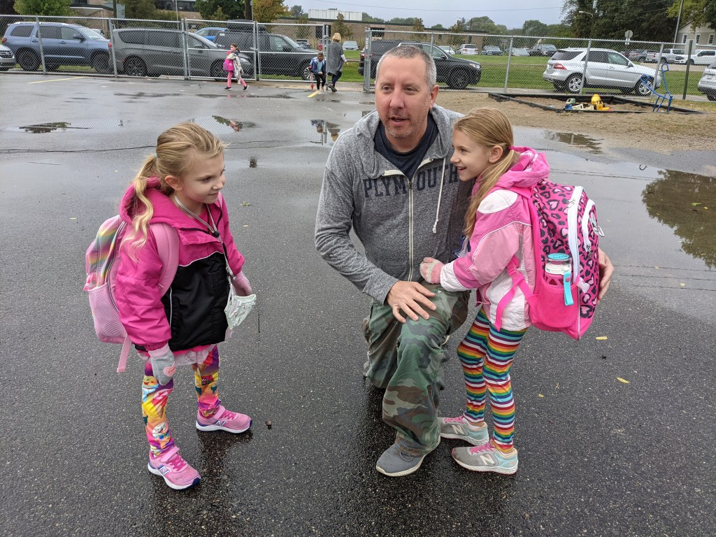 September 23, 2021: Daddy dropped us off at school and gave us lots of hugs before he left for the cottage. We needed three days worth of hugs. We really miss him. The plumbing at the cottage better be super fancy and shiny when we visit next summer! I’m thinking maybe a gold toilet, touchless faucets, and an enormous rainfall shower? Oooooh, fingers crossed!