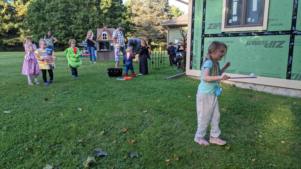 October 9, 2021: Finley has a Halloween party to go to this afternoon. That made us realize that we haven’t done enough Halloween decorating yet. So we got right to work. Then I had a special date with mommy and grammie while daddy and Fin went to her party. It’s still pretty warm outside and not many leaves have changed, but it’s never too early to get prepared!