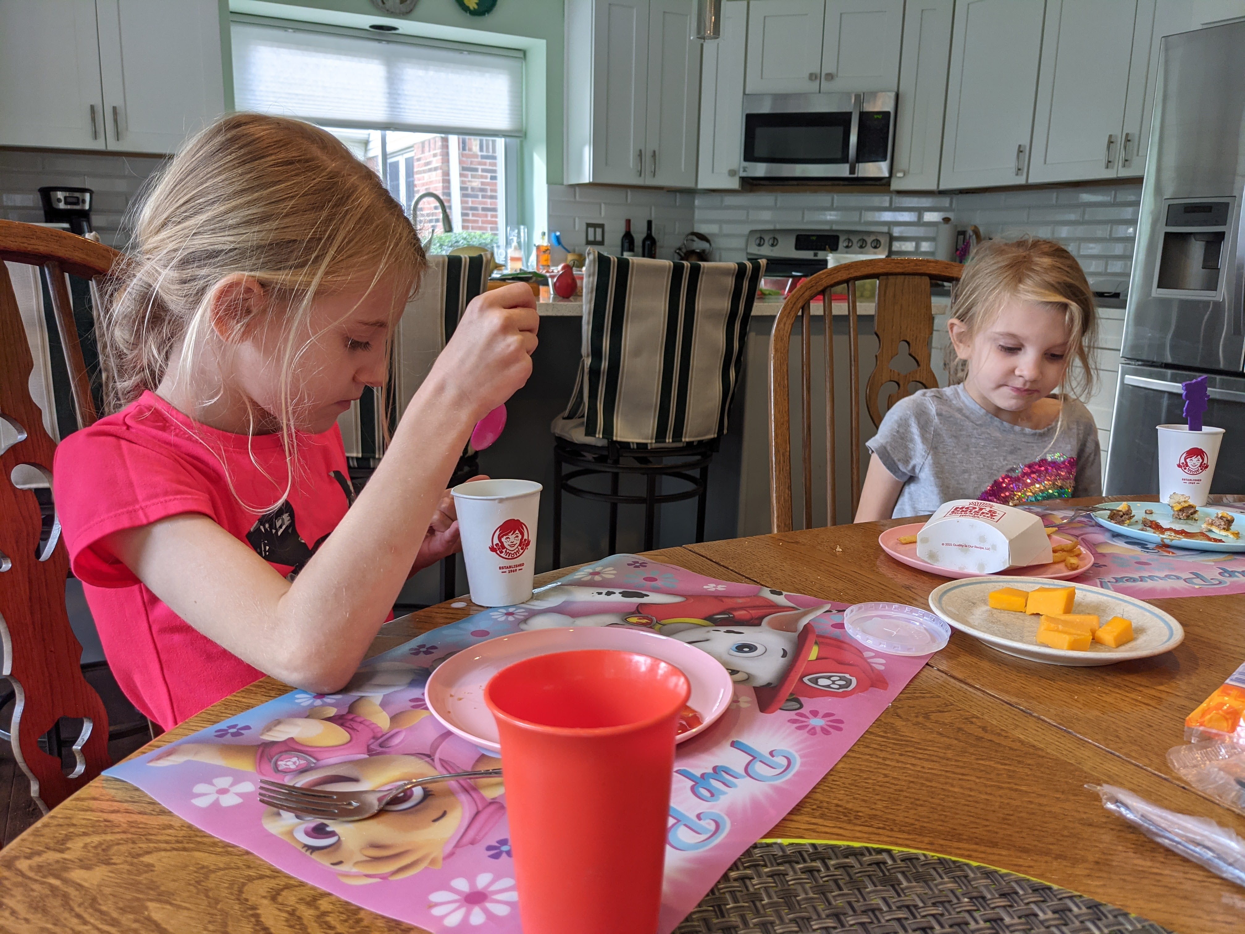 October 11, 2021: When we were little kids, grammie and papa picked us up from school all the time. We’d go to their house and eat lunch and play until mommy came to pick us up after work. Now we’re big kids we go to school all day and mommy and daddy pick us up. Poor grammie and papa. They must miss us like crazy. Today we had them pick us up from school and get us Wendy’s and play with us. It was just like the old days.