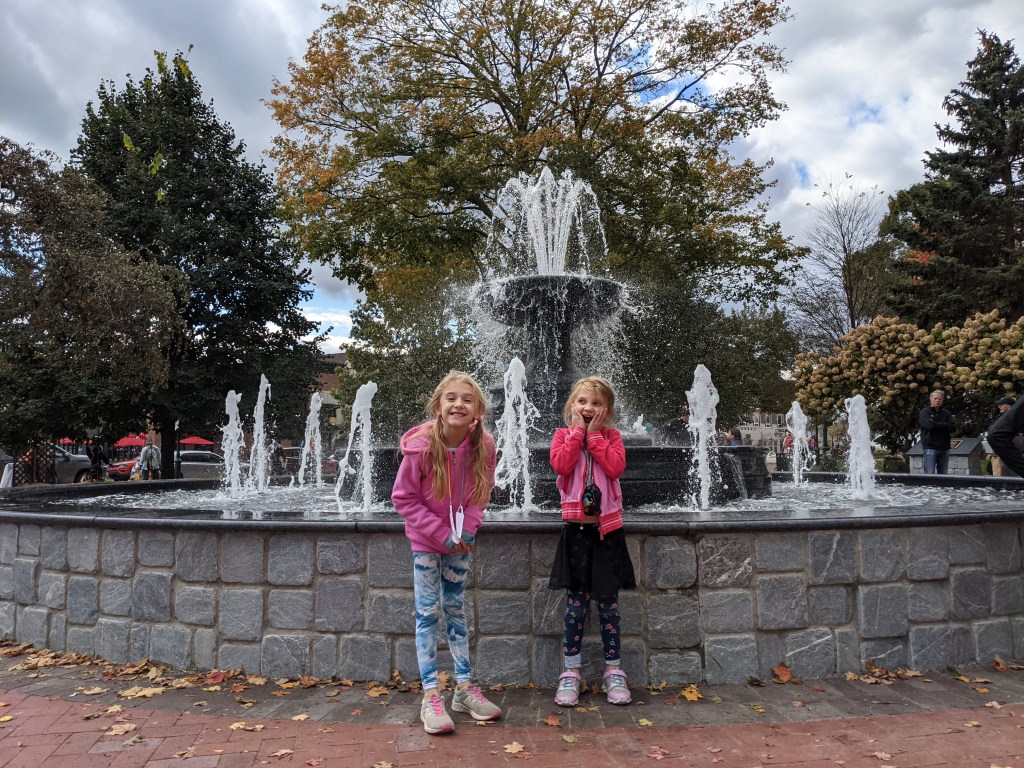 October 16, 2021: Sometimes daddy does this silly thing where he’ll tell us he has a surprise to show us. He thinks he’s being sneaky. He thinks we won’t be able to guess what it is, but Jameson always guesses before he can reveal the surprise. Today he thought he’d “surprise” us by showing us the new fountain in downtown Plymouth. Jameson guessed while we were driving down there. It was still pretty cool though. Keep up the surprises, daddy, but maybe in the future don’t tell us you have a surprise so early in the trip.