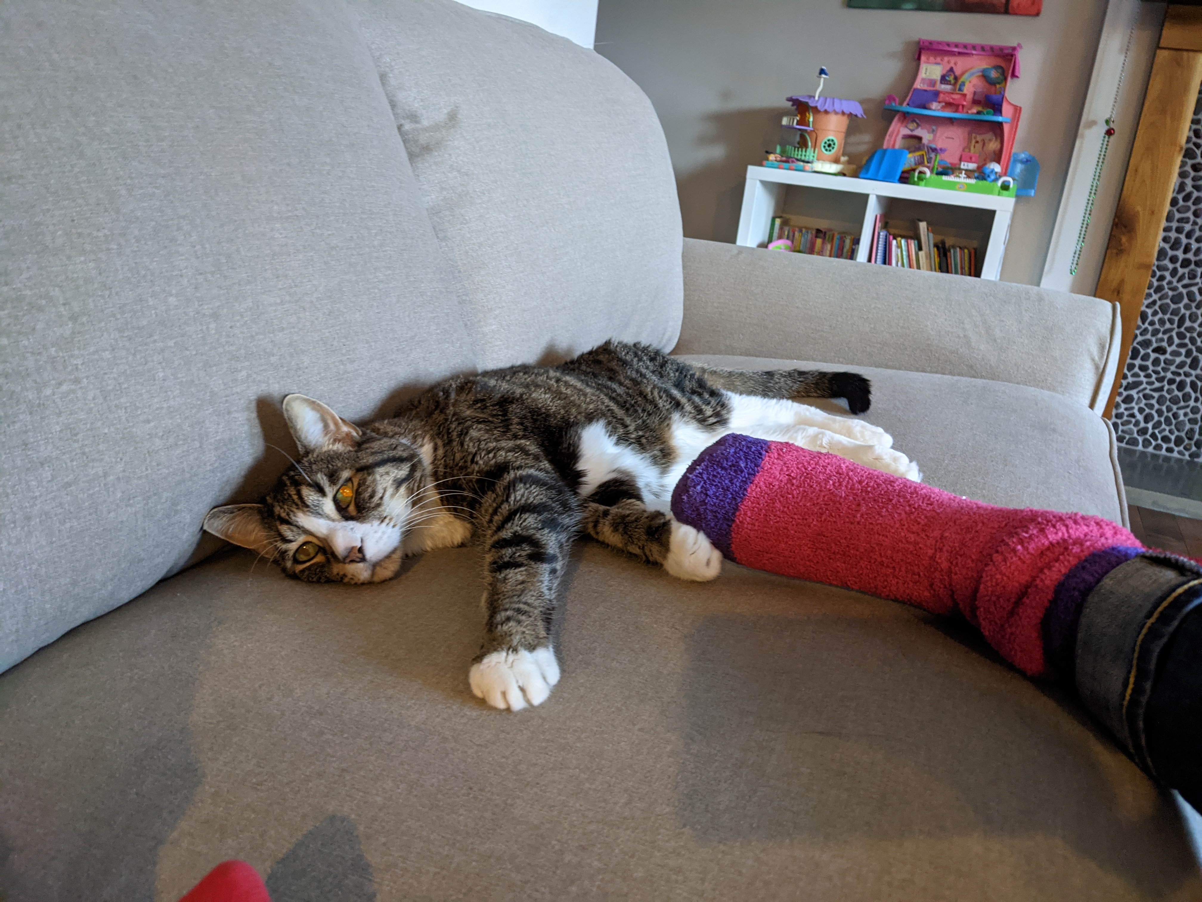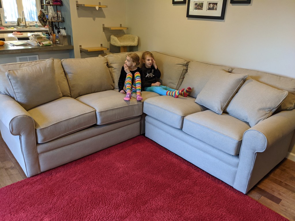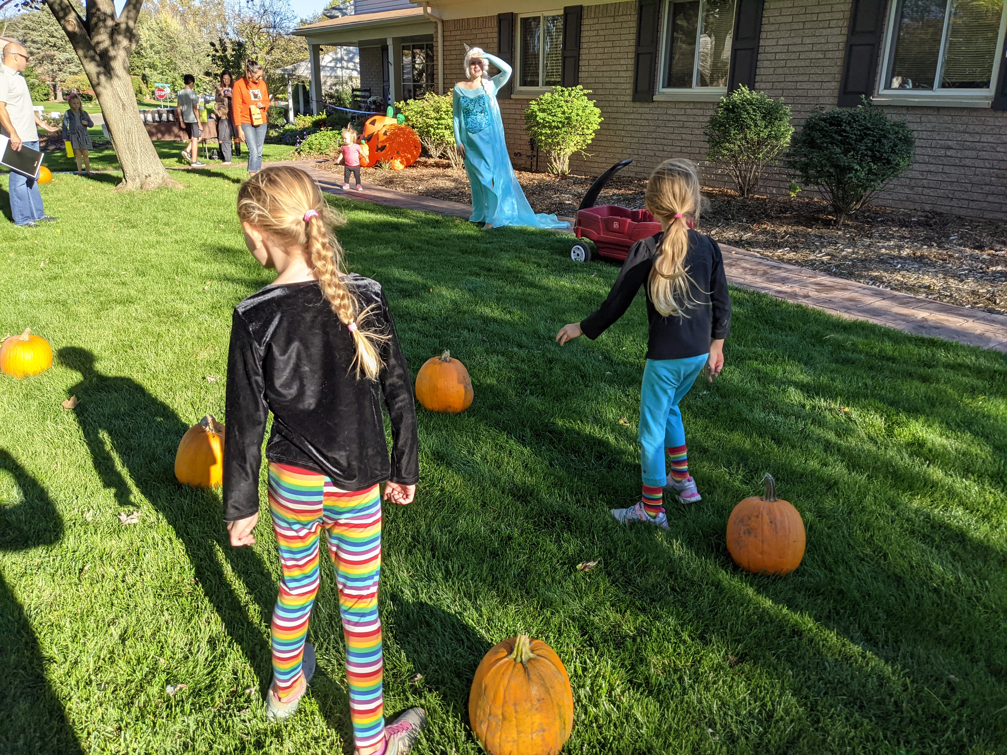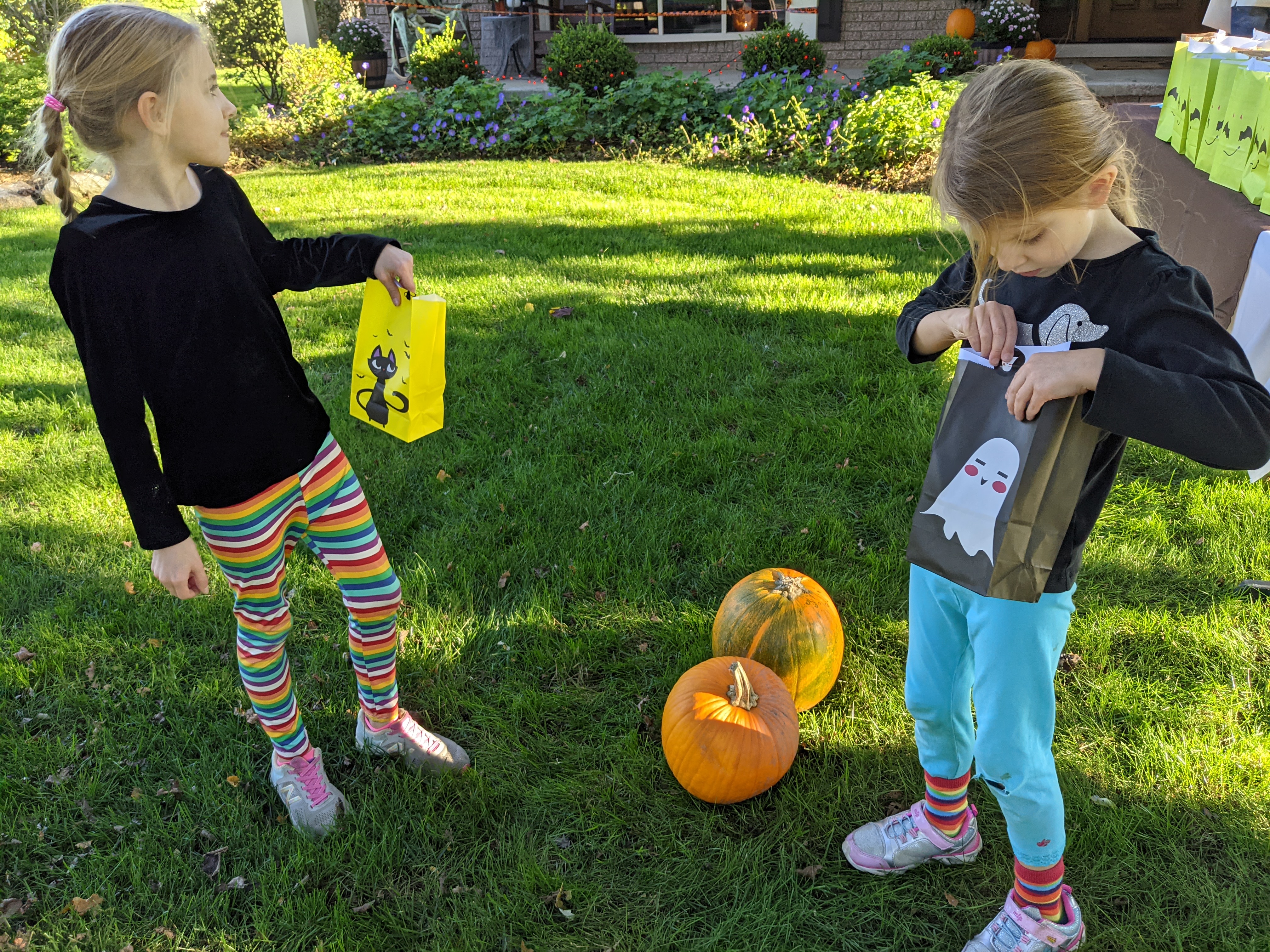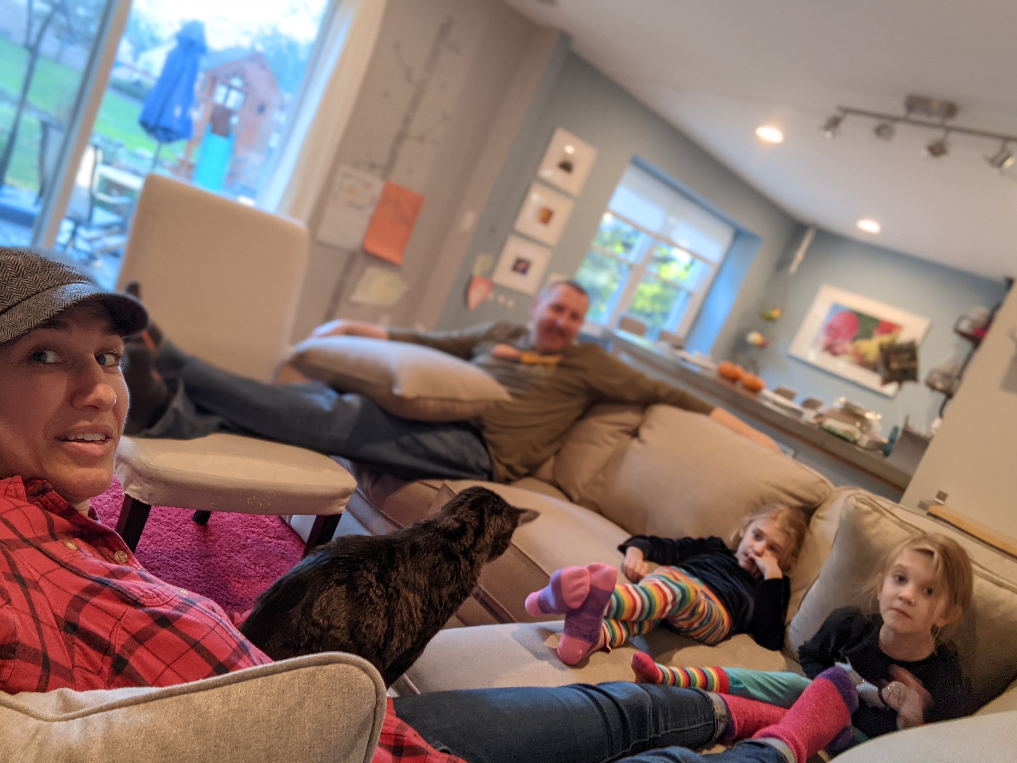 October 18, 2021: When we got out of school, we thought our new couch was supposed to be delivered already. It wasn’t! We passed the time with a quick trip to a pumpkin patch on our neighbor’s front lawn. Perfect timing cause the couch came right after we got back. Then it was time for movie night on the new couch! Awesome!