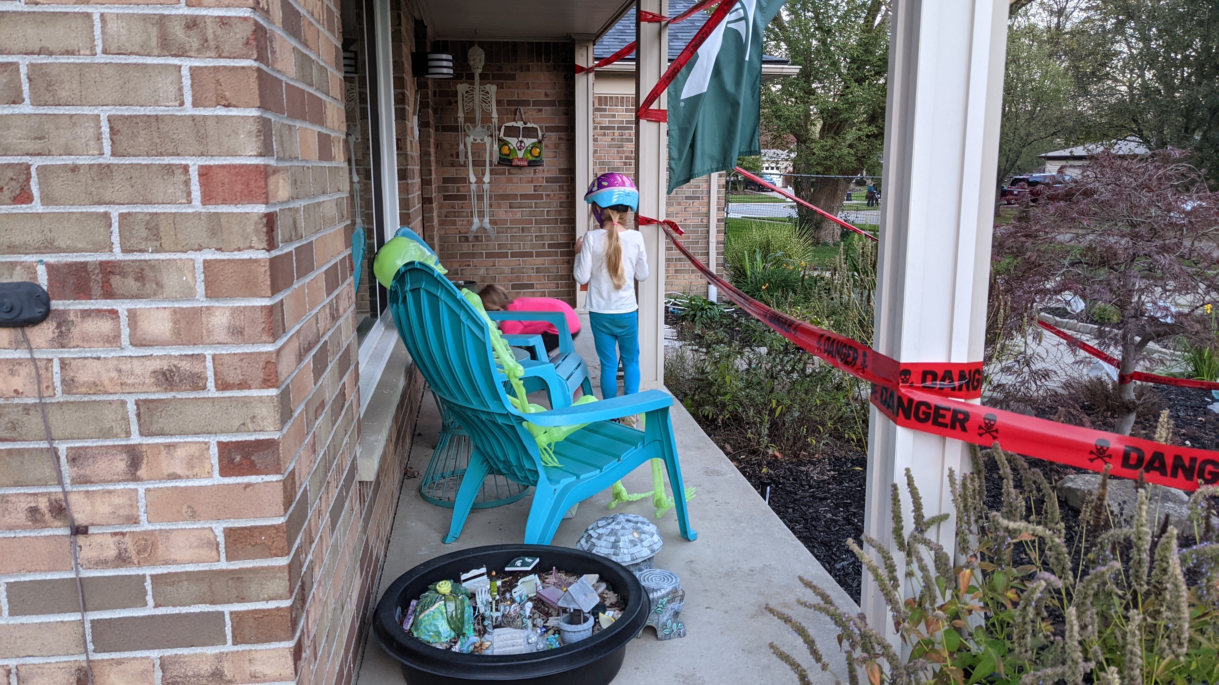 October 19, 2021: So we got boo’ed again! We had gone off for a few minutes to boo our neighbor across the street and when we got home someone had left us treats on the porch! And whoever it was boozed mommy and daddy….they were pretty excited about it. Guess we have to find two more friends to boo now!