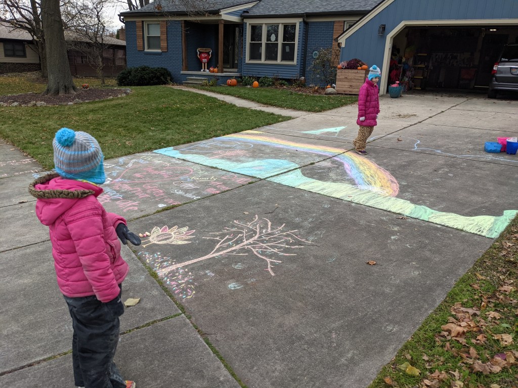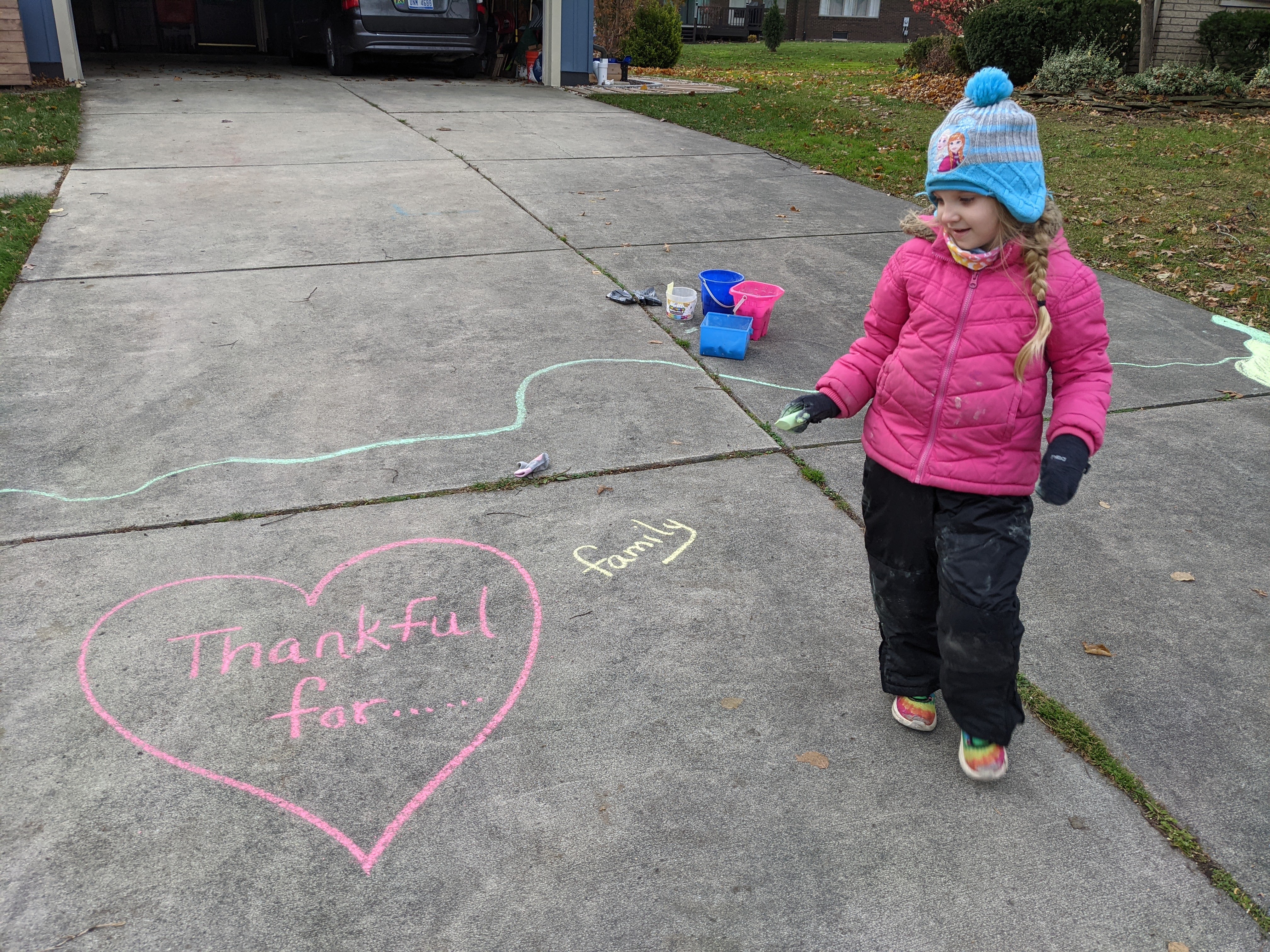 November 20, 2021: Mommy and daddy had some work to do outside today. So we thought we’d let all the neighbors know that we are thankful before it rains again. It was cold but we’ve learned how to have fun in the cold. Plus if we get cold outside it just means hot cocoa and cuddles inside!