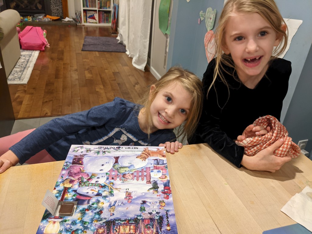 December 2, 2021: We headed out to the store right after school to buy a present for my friend’s birthday. His party is tomorrow. We were only gone an hour, but we missed Linda stopping by our house. Ugh. And she even bought us a calendar! One with candy hidden in it! I miss Linda.