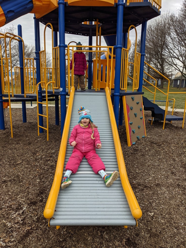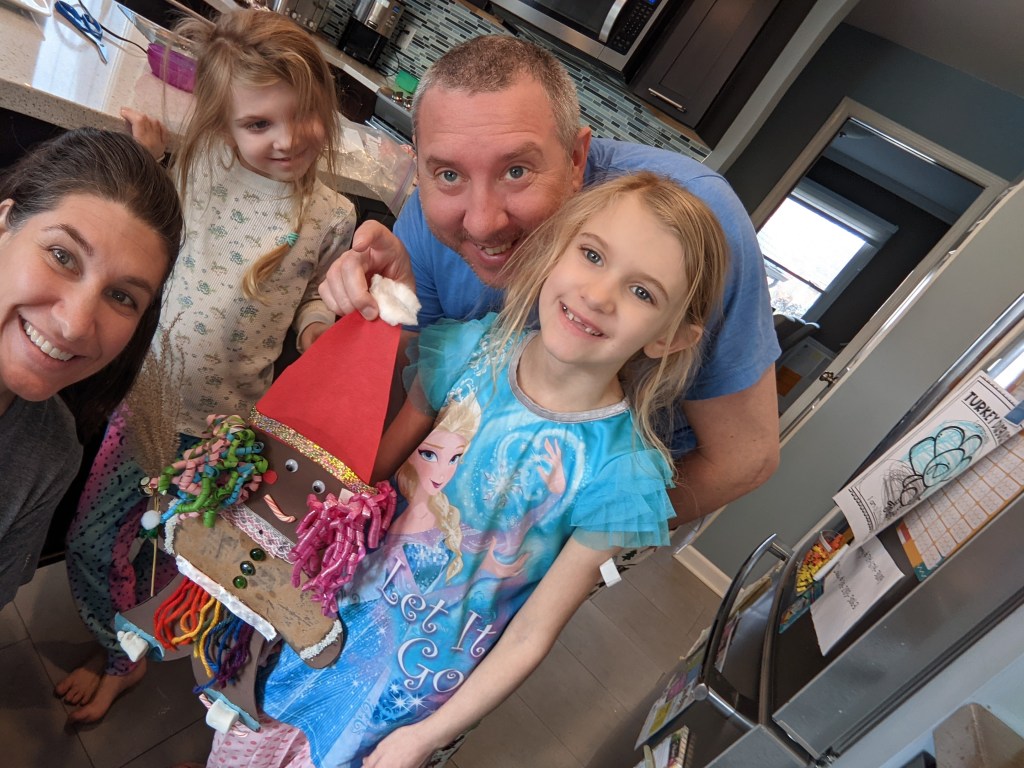 December 5, 2021: My homework project required that our family work as a team to decorate a gingerbread woman. The trick was we had to include the five senses. We added fun stuff to feel, interesting things to see, candy canes and marshmallows to taste, a nutmeg sweater to smell (very stinky), and a security alarm to hear. Daddy used a tiny sensor and speaker from a broken Christmas ornament. It even plays Jingle Bells! I think our teamwork was on point. To celebrate we went to the roller slide park I’ve been wanting to go to for weeks!