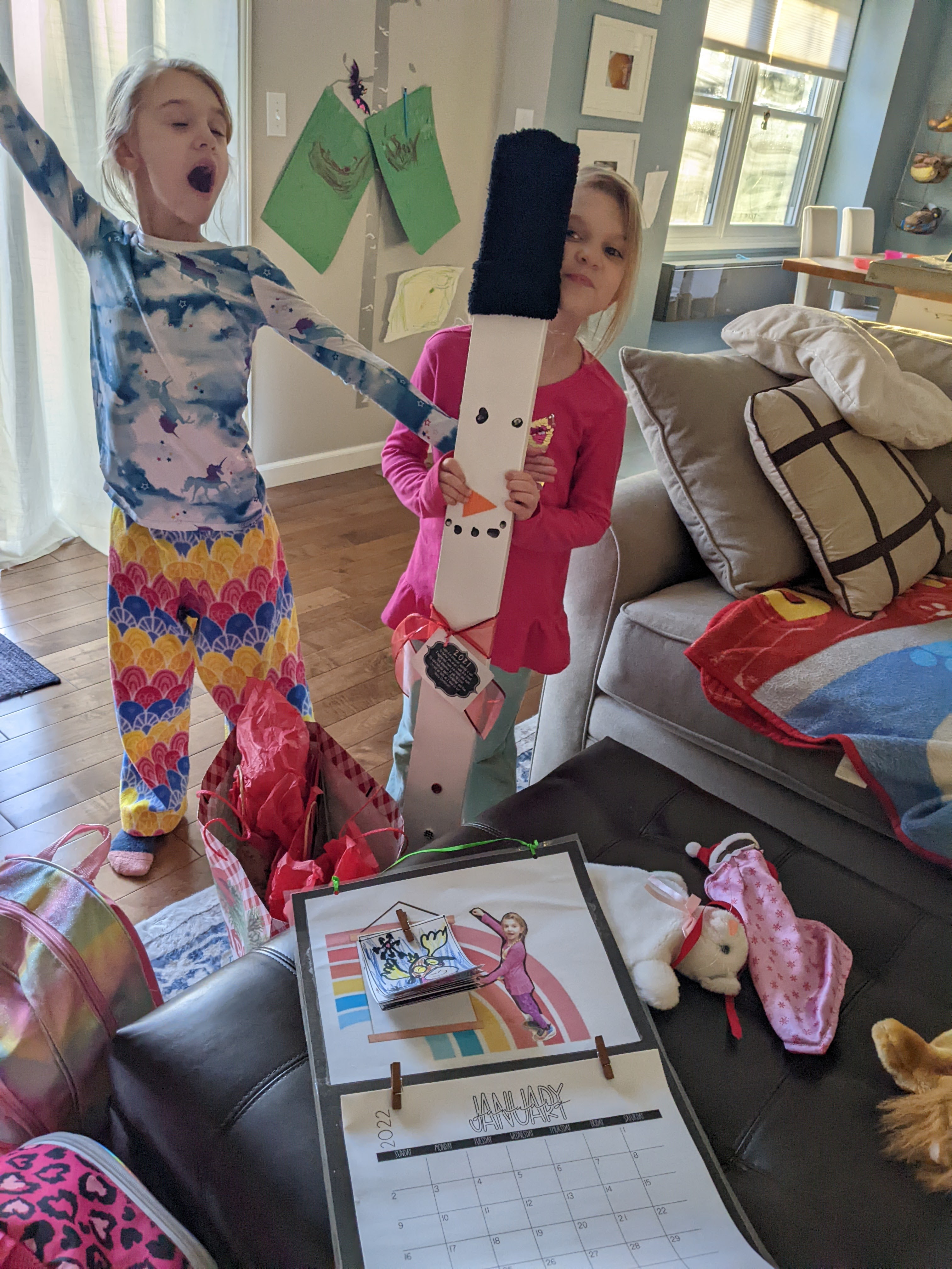 December 16, 2021: Today we had Holiday parties at school! Awesome! Got surprised with presents from our neighbors! Awesome! Got to try something called a Twinkie! Awesome! And drove through the holiday light show! Awesome! We love this time of year!