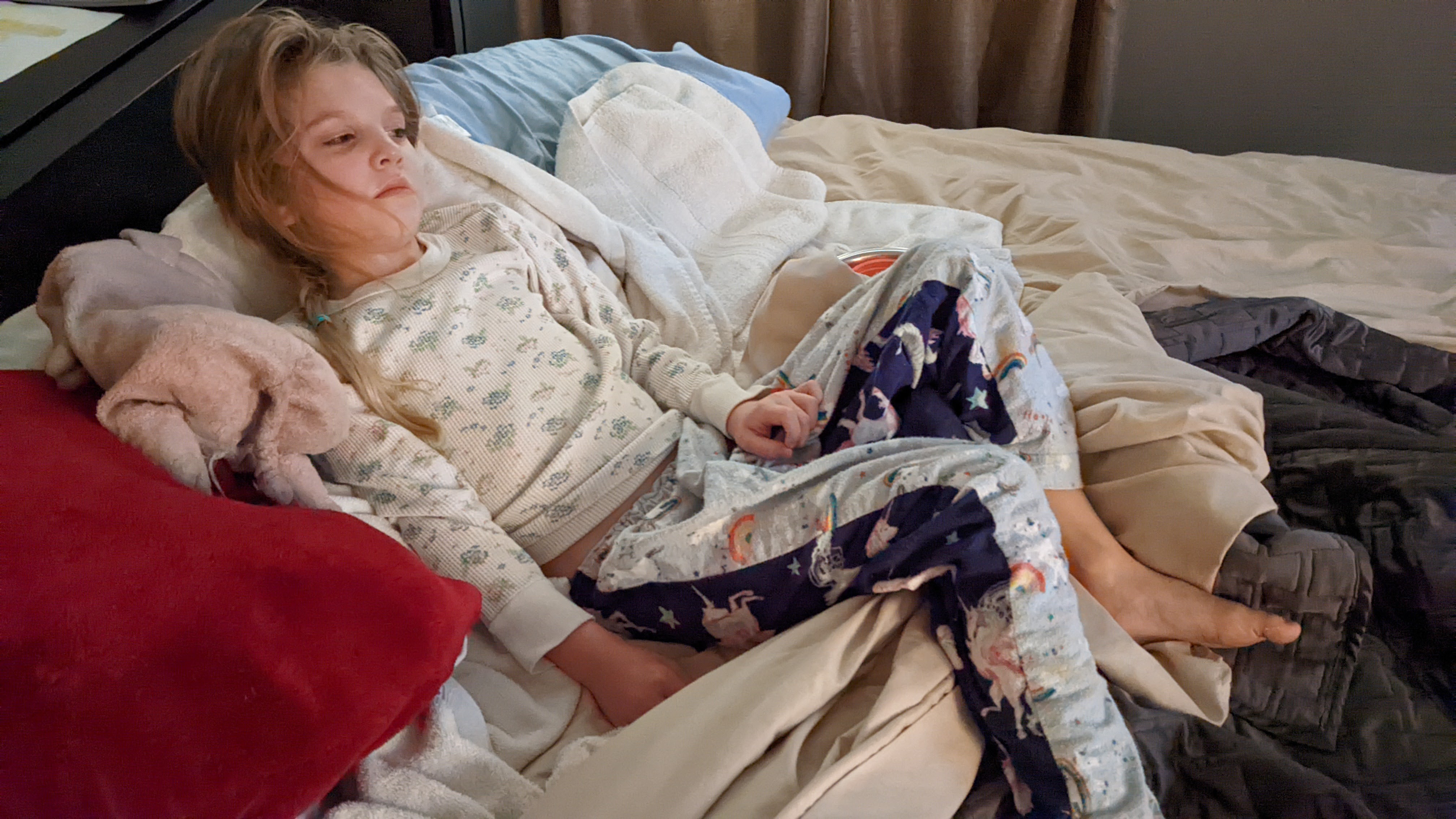 December 20, 2021: So Finley is sick. She went to bed with a fever and then threw up in the middle of the night. Yuck. She can’t keep anything in either end. I knew it wasn’t a regular sickness because she didn’t even want to get out of bed to put up her ornament. I was happy to help. Now, she better get well soon because I miss playing with her!