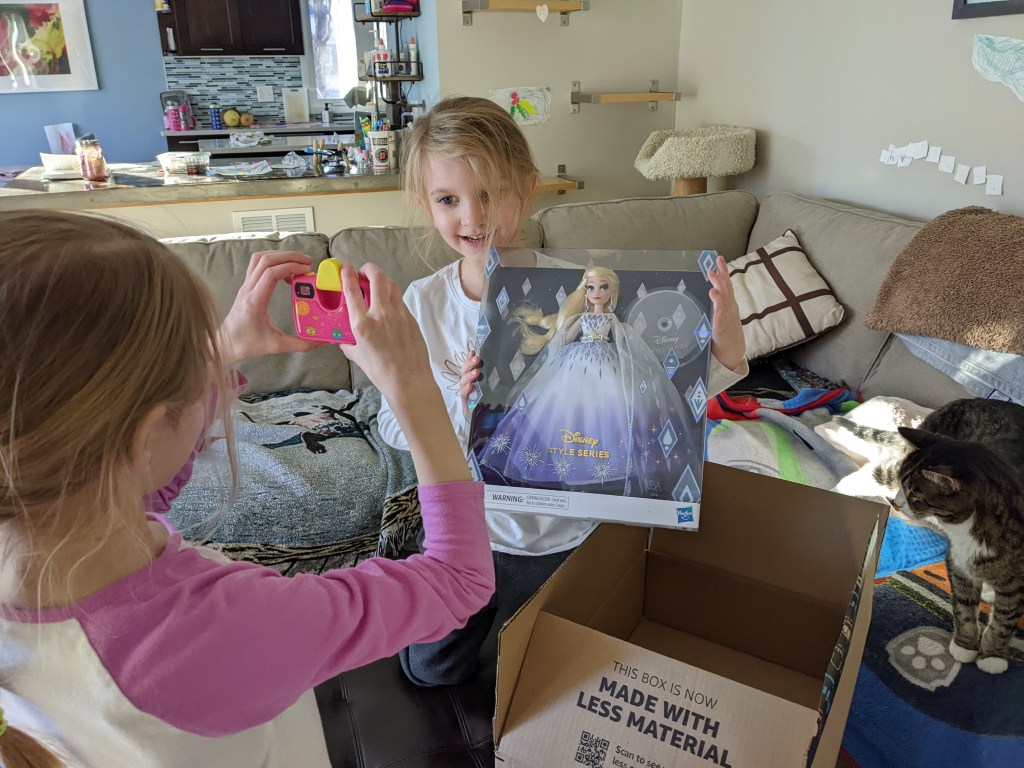 January 11, 2022: Santa did not bring me the Elsa Show Yourself doll I wanted, so I did the next best thing. I bought it myself! I have been saving up part of my chore money to spend and this was the perfect thing. I ordered it on Amazon this weekend and it was on the porch when I got home from school! I wanted to skip school in case it came early but mommy assured me it wouldn’t come til the end of the day. Guess she was right!