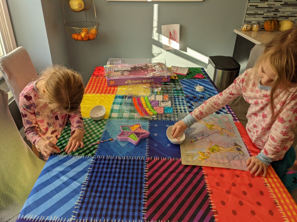 January 16, 2022: Just another lazy Sunday lounging in our jammies all day, making friendship bracelets, and playing. Yup. Perfect way to spend the day.