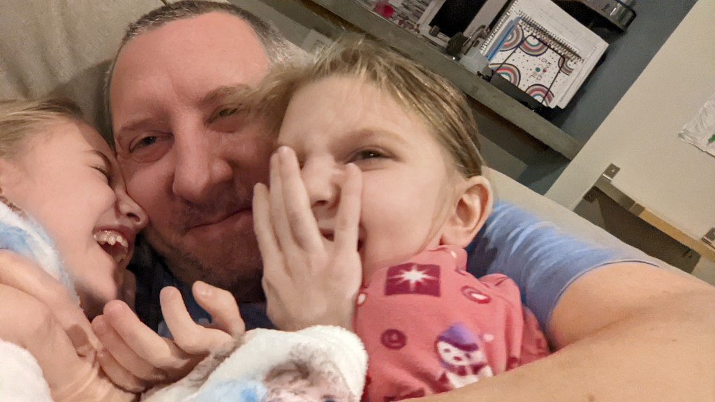 January 23, 2022: Daddy has really long arms. He can tickle us from a long way away so we really need to be careful. He can even tickle two of us at once. So if one of us gets caught and needs to be rescued…guess what? It turns into two getting tickled at a time. Luckily we really like to be tickled.