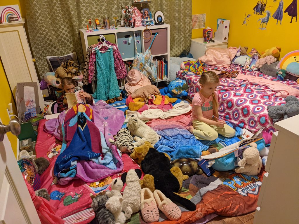 Shhh Go to Sleep January 29, 2022 · by bierzpam · in January 2022. · January 29, 2022: Sister sleepovers are the best! I wonder if mommy would let us move our beds into one room so we could sleep like this every night? All the movies she watches have bedrooms with two beds in them. Share this: Share on X (Opens in new window) X Share on Facebook (Opens in new window) Facebook Like Loading... Related