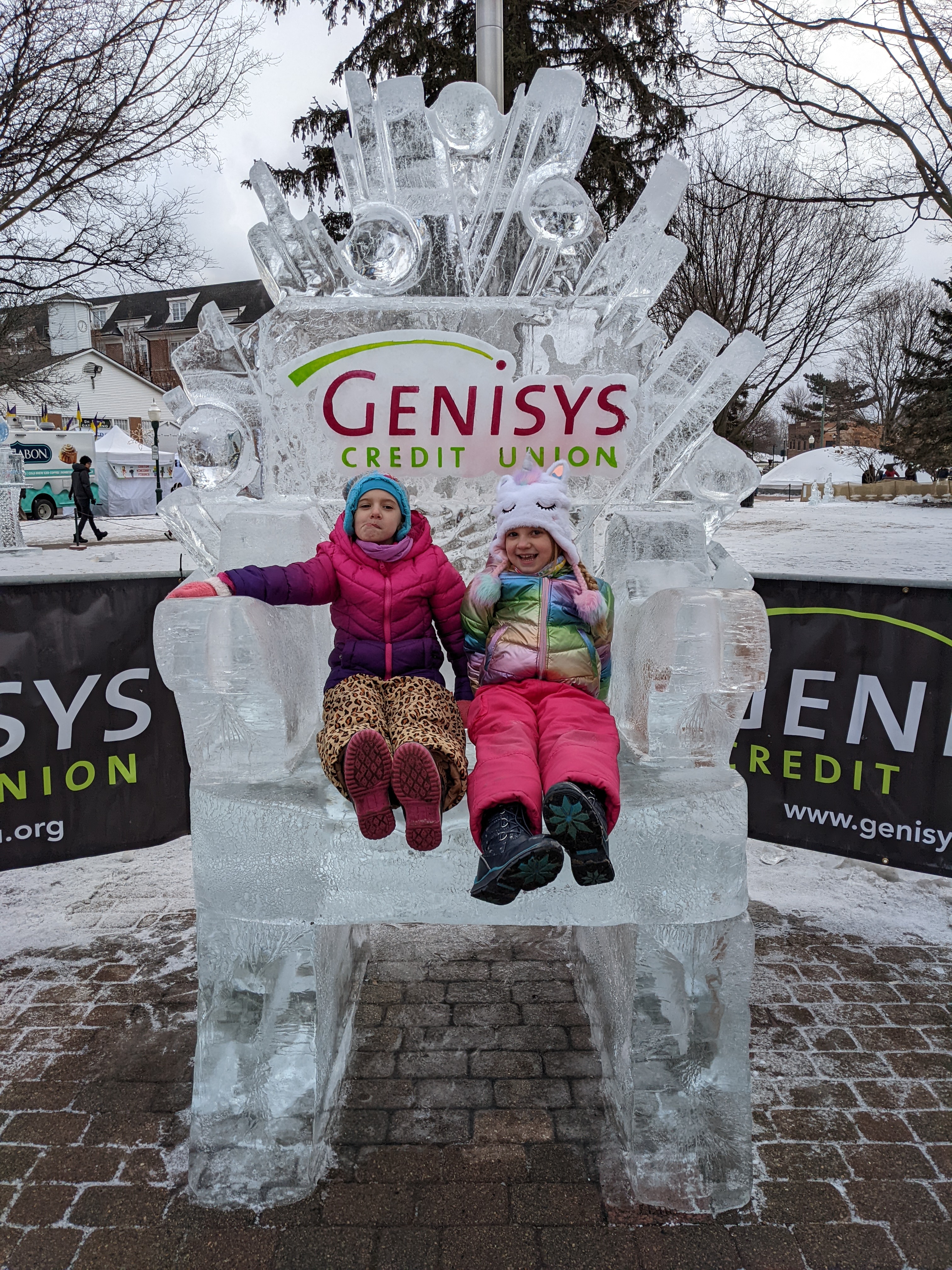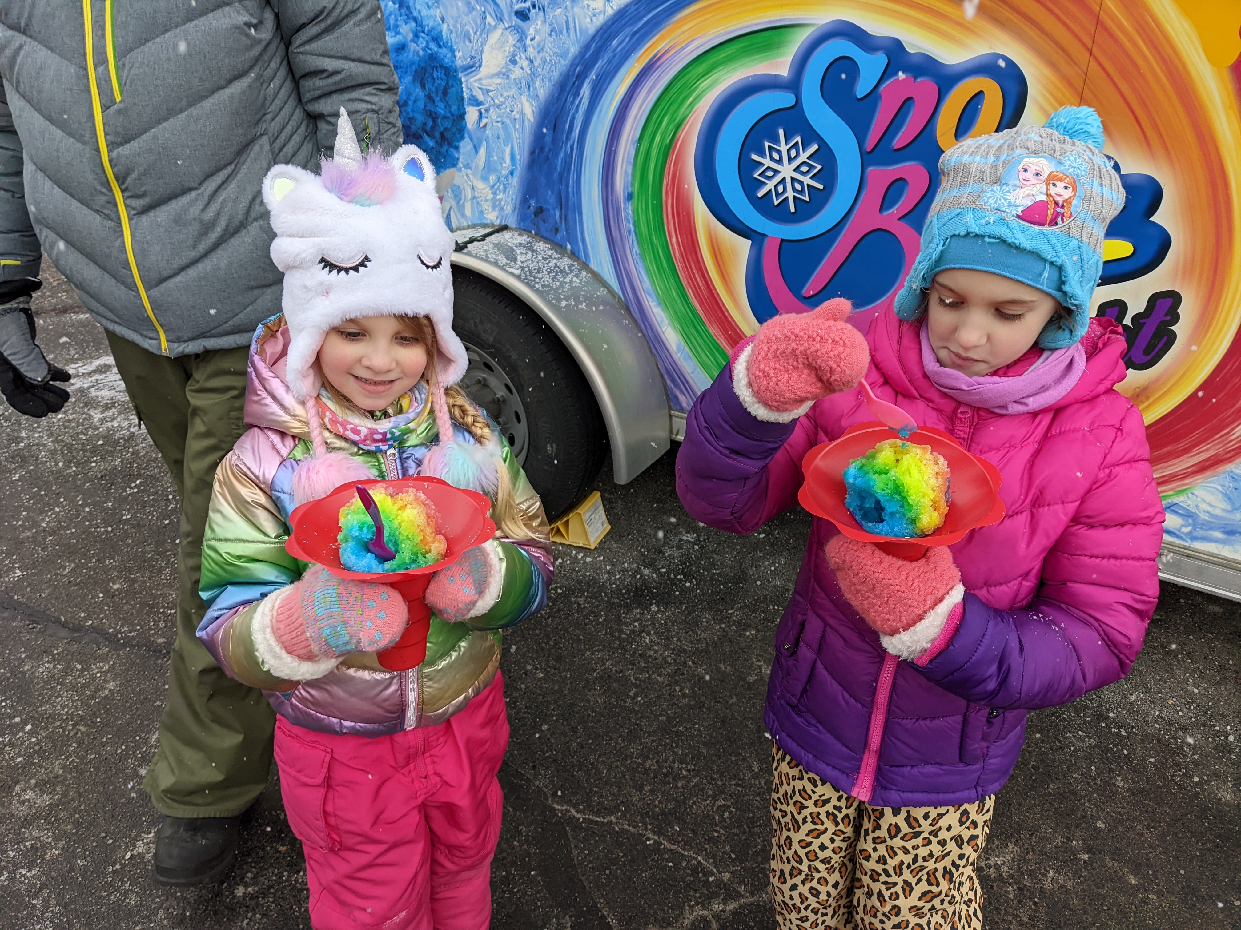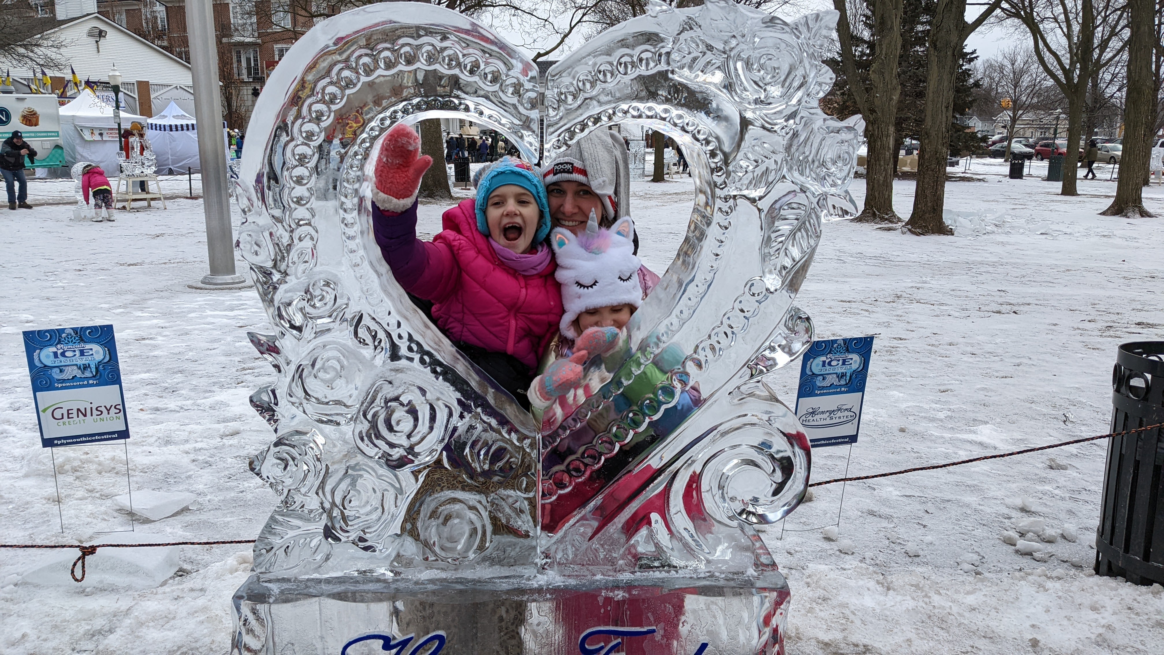 February 13, 2022: Just when we thought our weekend couldn’t get any better, it DID! We went to the Plymouth Ice Festival to look at amazing ice sculptures and just happened to find a unicorn giving rides! Yup! You heard that right! Well, it was a pony but she had a horn on and a flower necklace and we got to ride her. It was our first horse ride and she was dressed like a unicorn. We couldn’t believe our luck. We’re going to remember this weekend forever!
