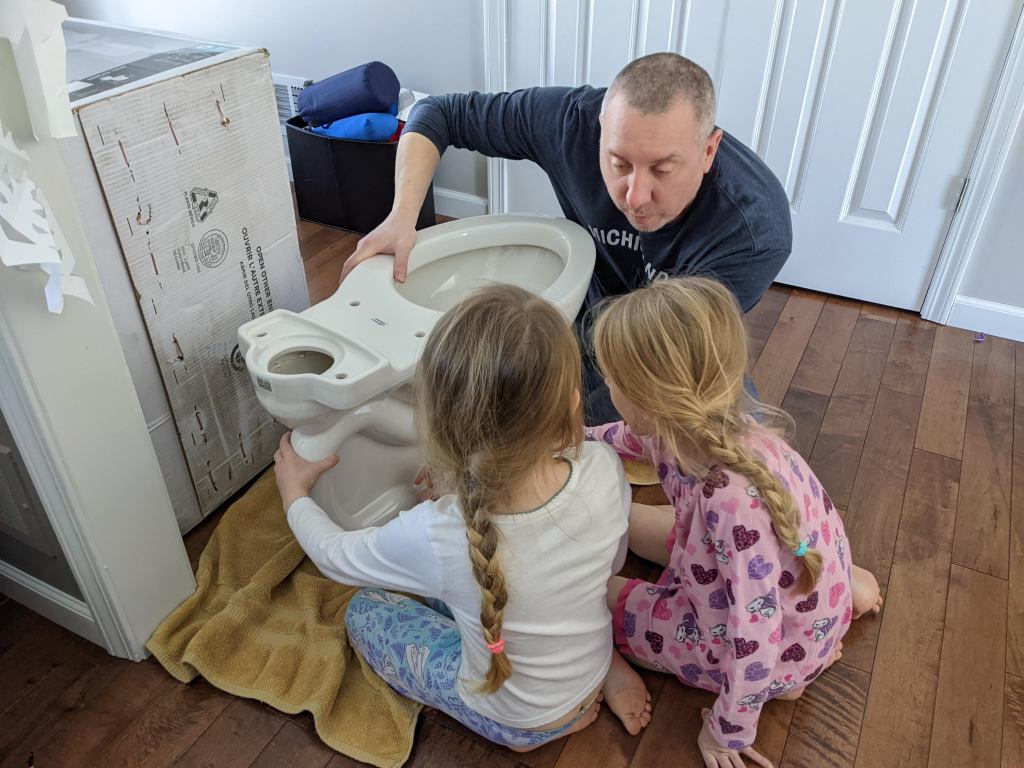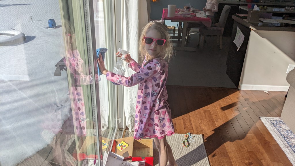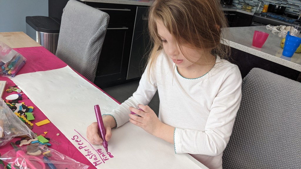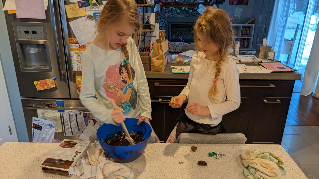 February 20, 2022: I don’t think we’ve found a good balance for our mid-Winter Break. Yesterday we did nothing, just slothed around. Today we cleaned the kitchen, washed windows, learned to install a new toilet with daddy, completed a masterpiece, went sledding, built a snowman, baked brownies, ate brownies, and forgot about all the other stuff we probably did. It was a very busy day. I wonder what side of the spectrum we’ll land on tomorrow?