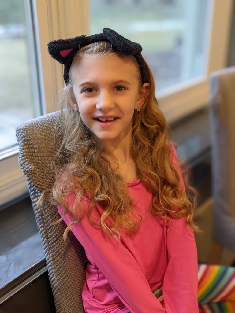 February 24, 2022: Mommy said ok to putting curls in my hair and wearing my hair down all day at school. It looked great when I headed out the door. By the time I got home, the curls were gone and my hair was a tangled mess! I think I’ll go back to a braid tomorrow and I think I might agree with mommy that it’s time for a haircut.