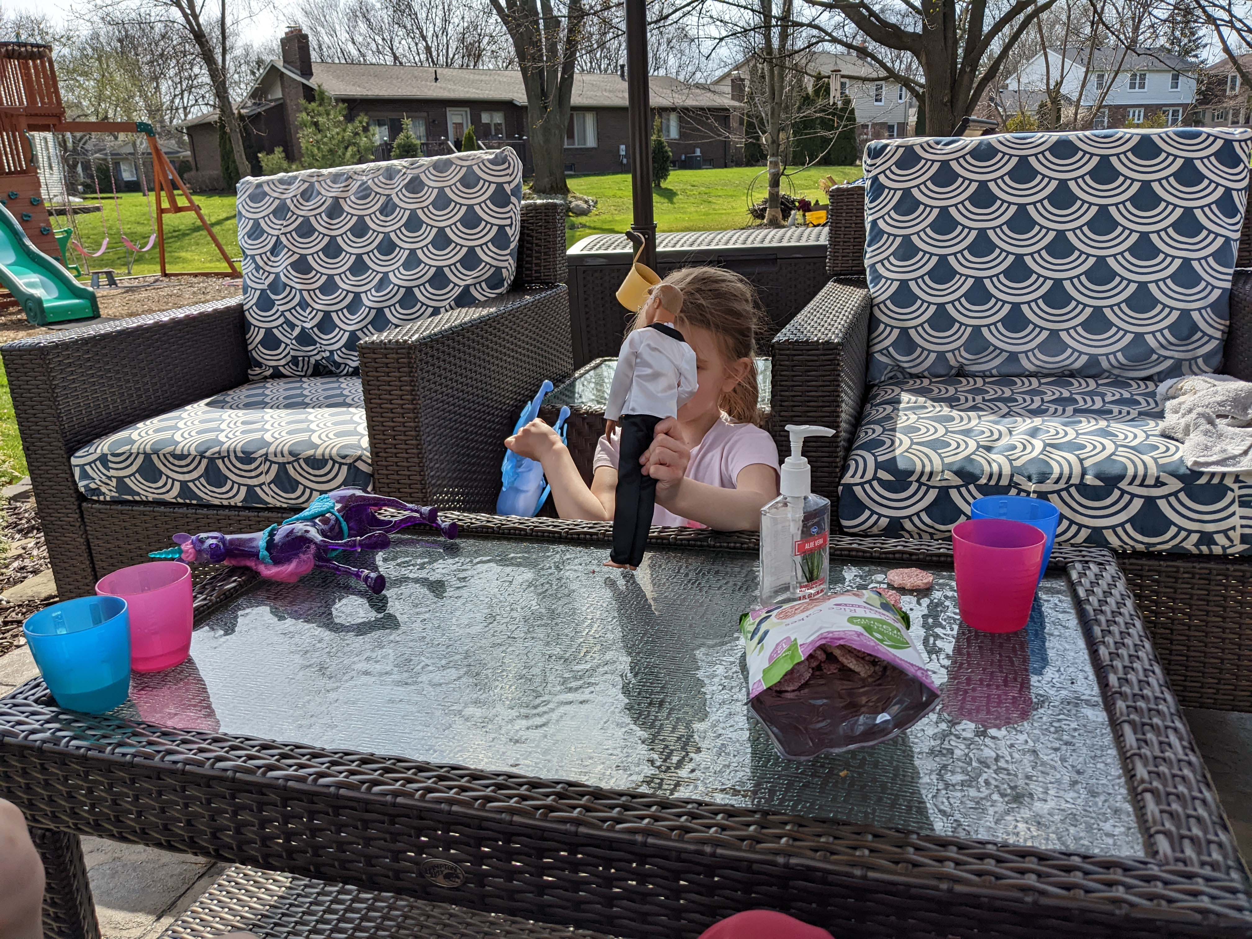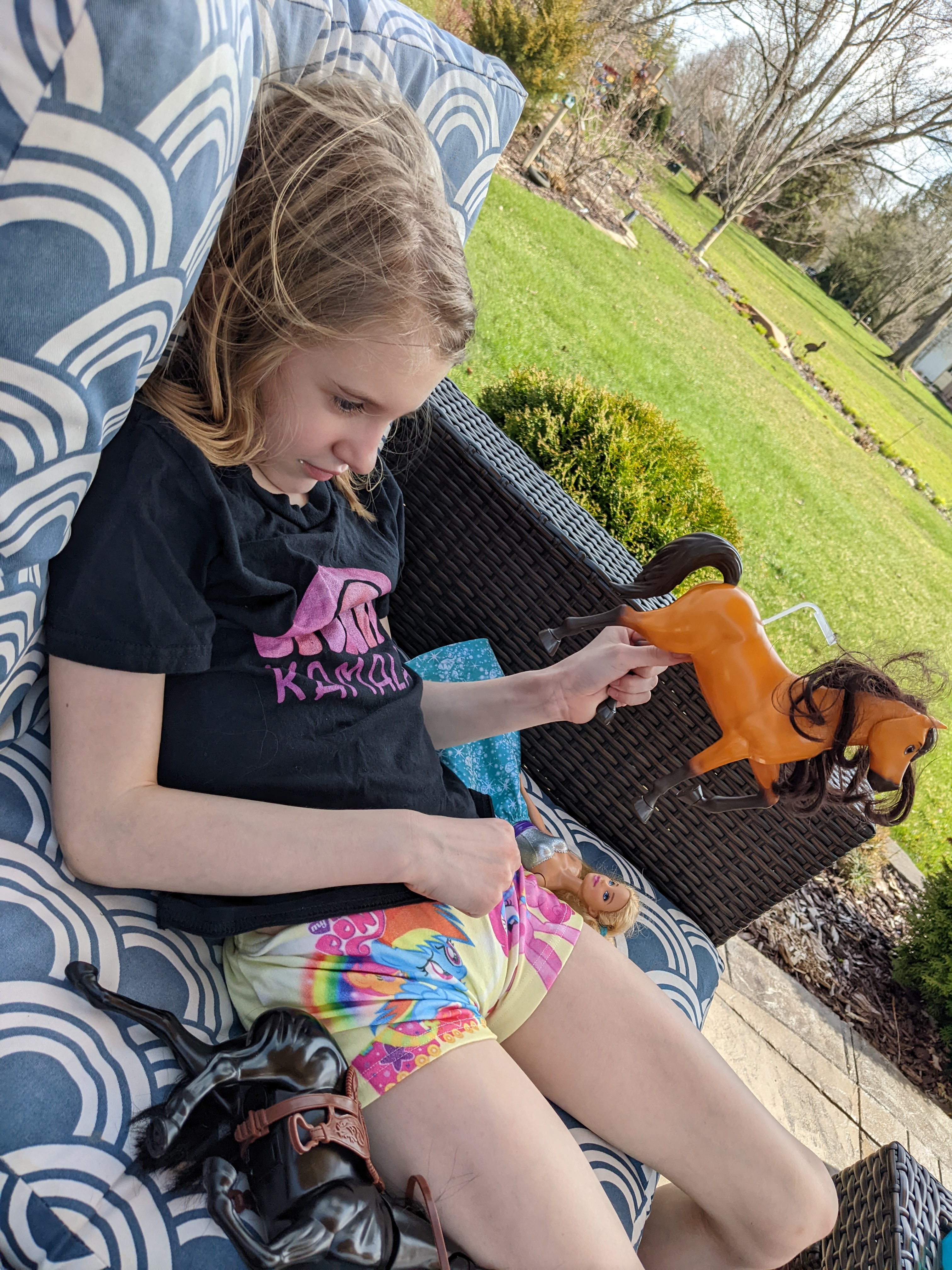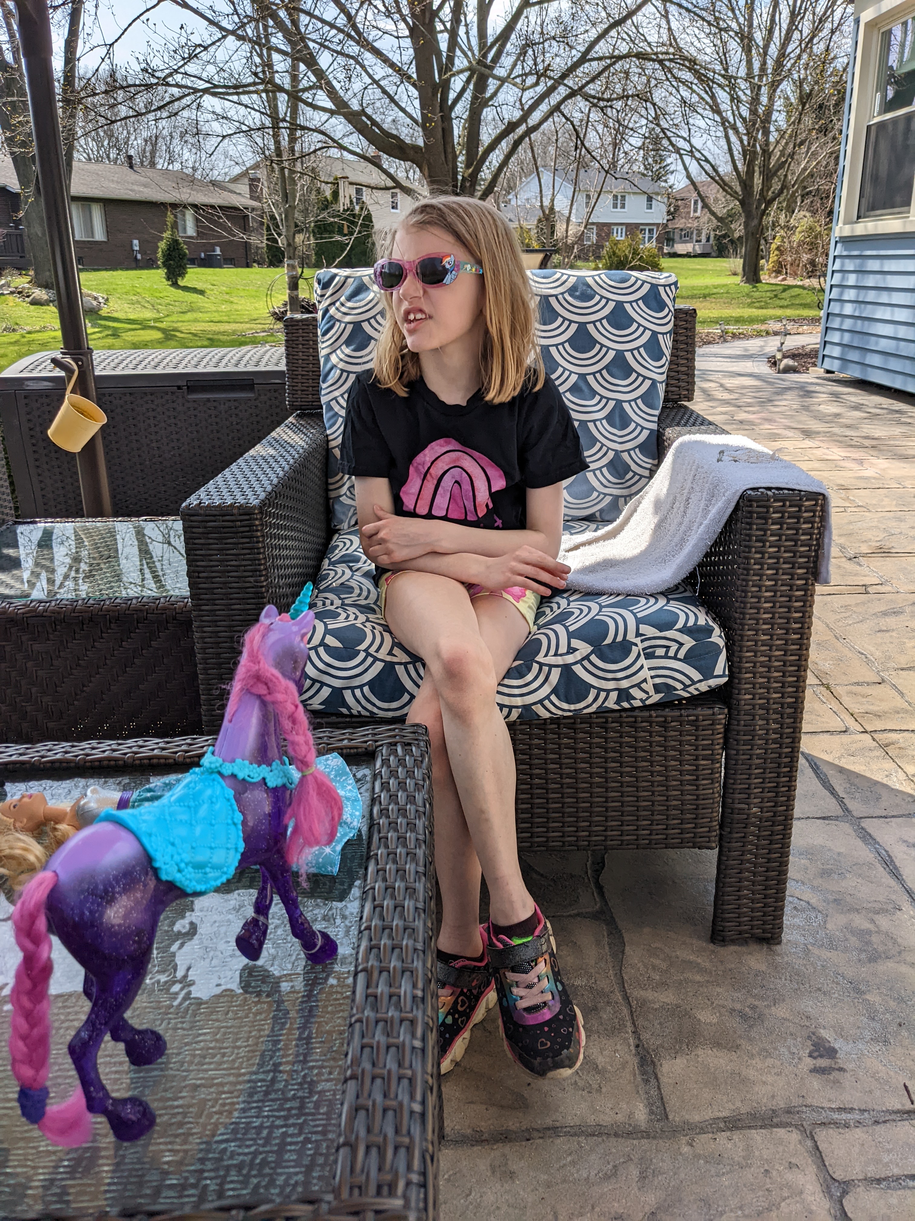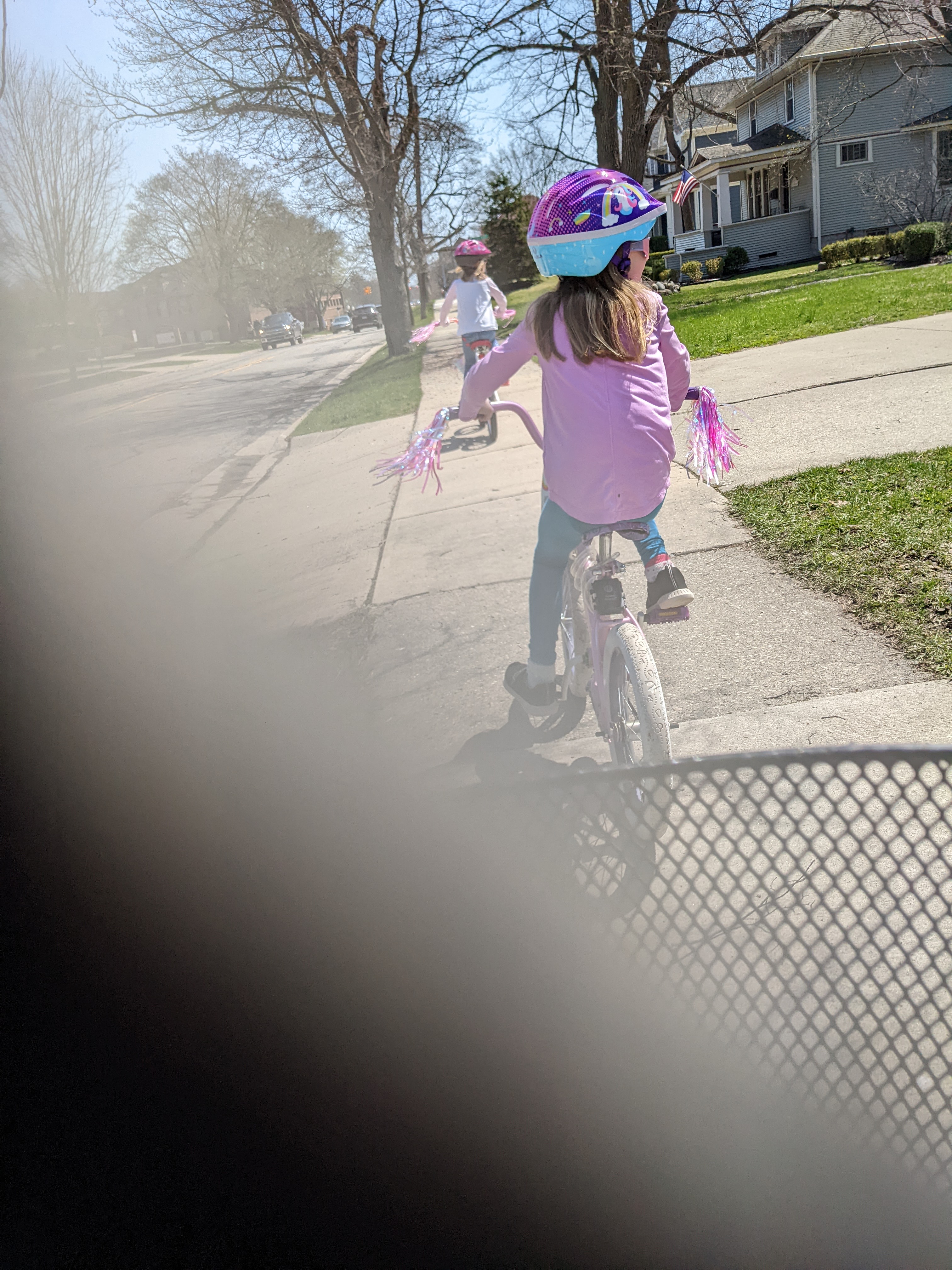 April 23, 2022: Yay summer’s here! Oops, I mean spring is here! Whatever the season it is, the warm air and sun feels amazing! We’ve missed going out without coats and riding bikes downtown and playing outside all afternoon. We came in for bathroom breaks but that’s it. We even ate outside. Golly. We really missed this!