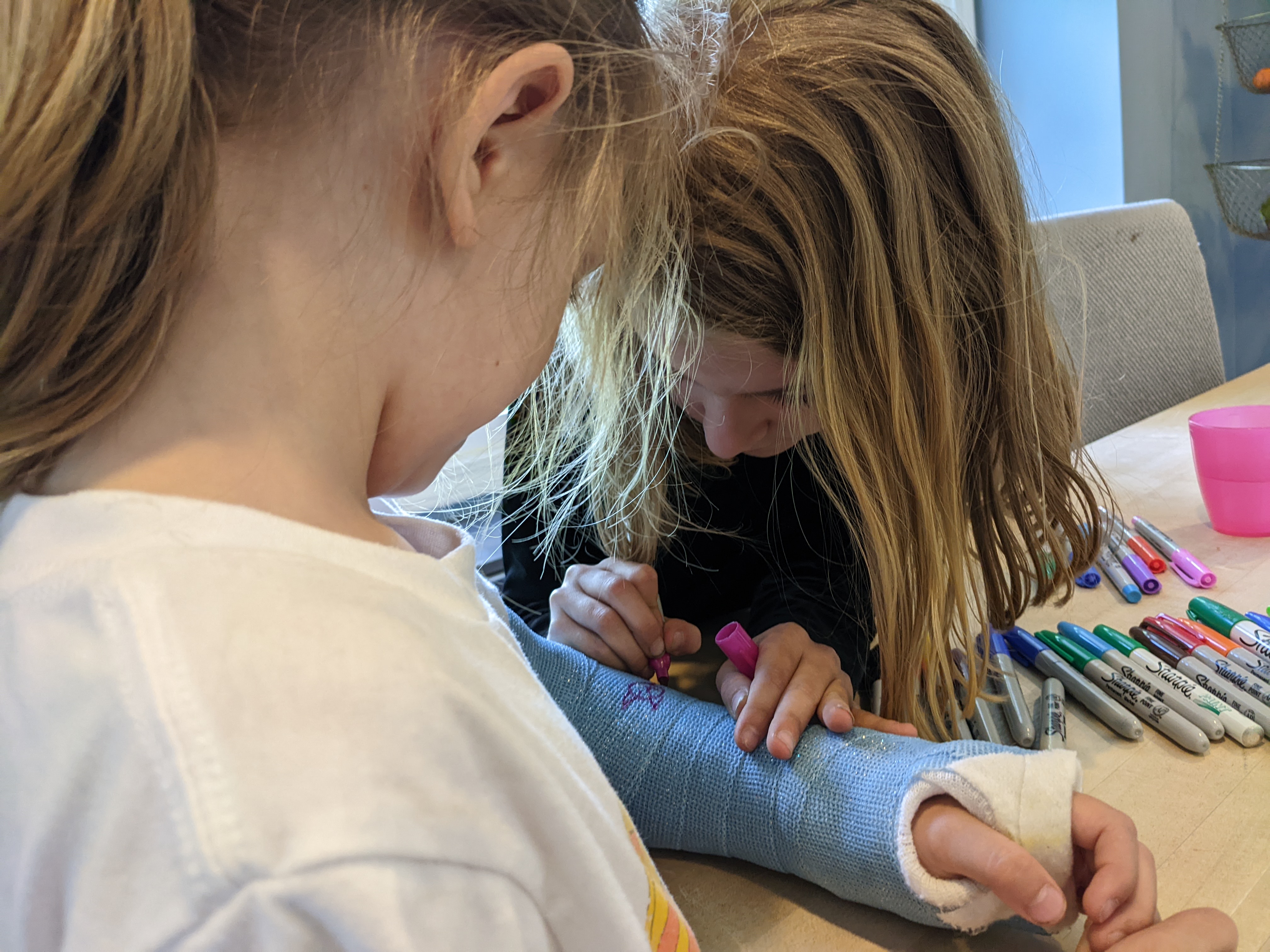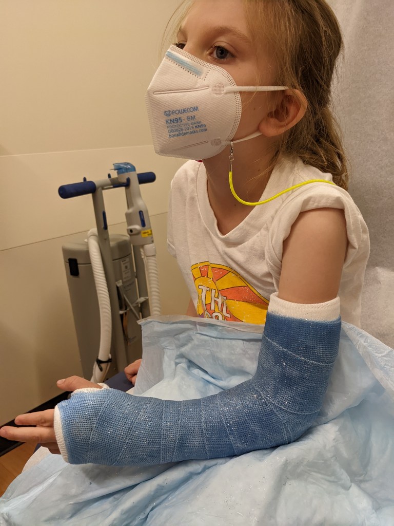 May 17, 2022: I’ll give you the bad news first. The doctor said it’s broken. The good news is I got a blue cast with silver and blue glitter! It looks beautiful and I only have to wear it for three weeks! That’s not bad at all. Plus, my doctor said I have to eat ice cream to help it heal! Wow. This doctor is pretty awesome. His office isn’t close, but he’s totally worth the drive. When I got back to school, I didn’t let anyone sign my cast. I saved the first spot for Jameson. Everyone else can sign it tomorrow.