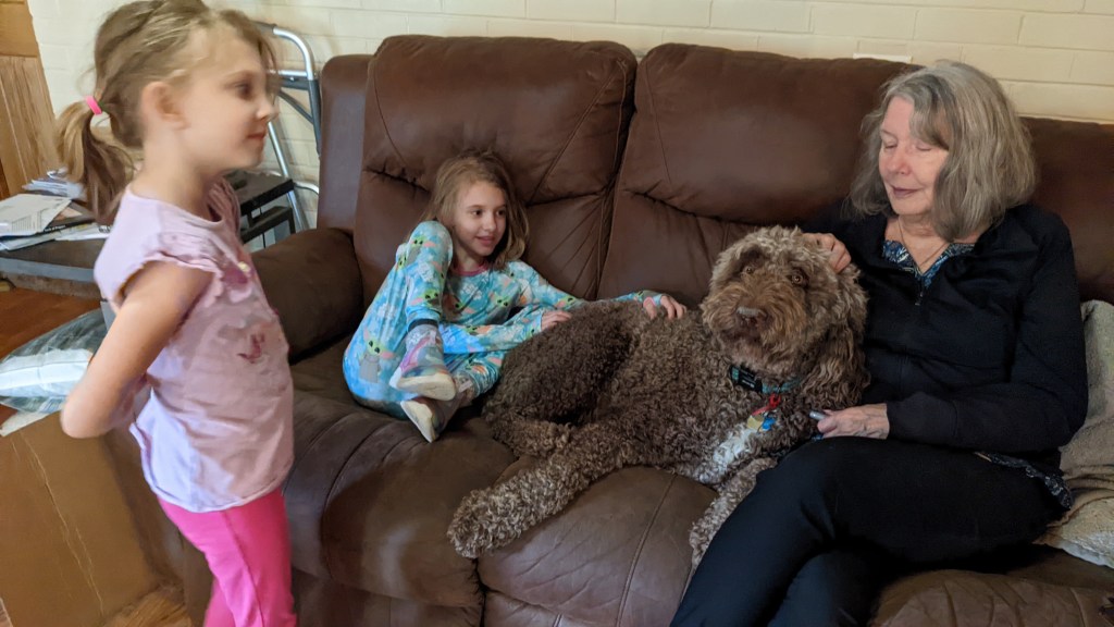 May 22, 2022: I’m pretty sure when we visit grandma, Griffin thinks we’re there just to see him. We make sure he gets lots of pets and paw holding while we’re there. Then we get grandma hugs when he’s satisfied. He totally thinks he’s human!