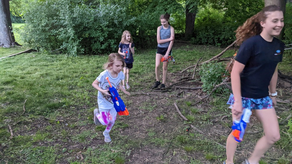 June 16, 2022: It’s the official first full day of summer vacation! What better way to welcome it with playing all day and a nerf war with our neighbors! This year we are bigger and much better at keeping up with the big kids. We stayed up until 11pm AND mommy let us have a sister sleepovers for a second day in a row. This laid-back summer version of mommy is awesome!