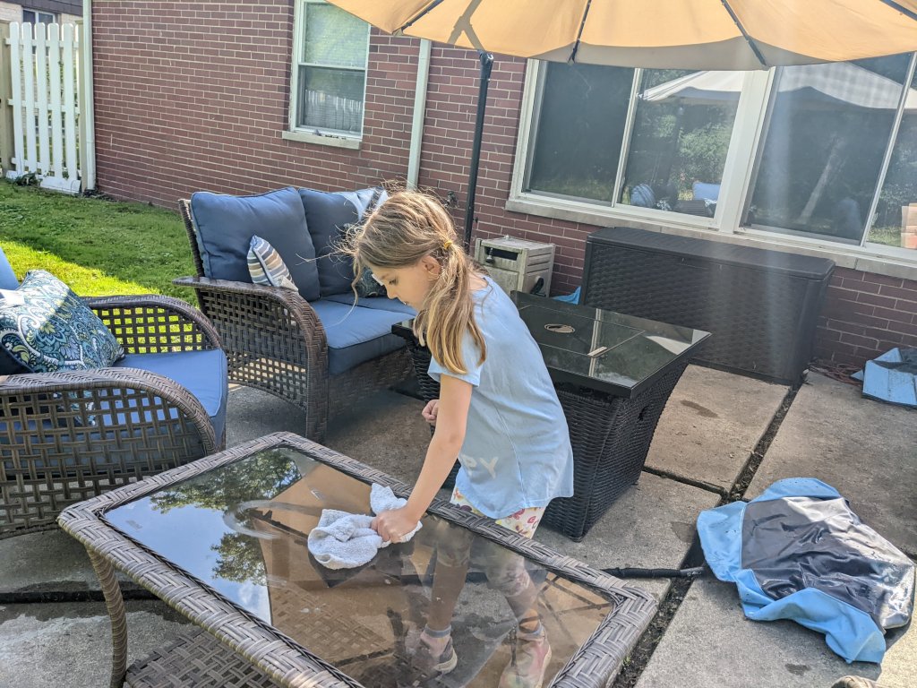 July 16, 2022: While mommy and daddy were busy at grandma’s house, Jameson and I also did some things. A little washing of the patio furniture and a lot of playing with dogs. Griffen was really happy to have visitors. I’m glad we could give him some love. He seems a little bored without grandma.