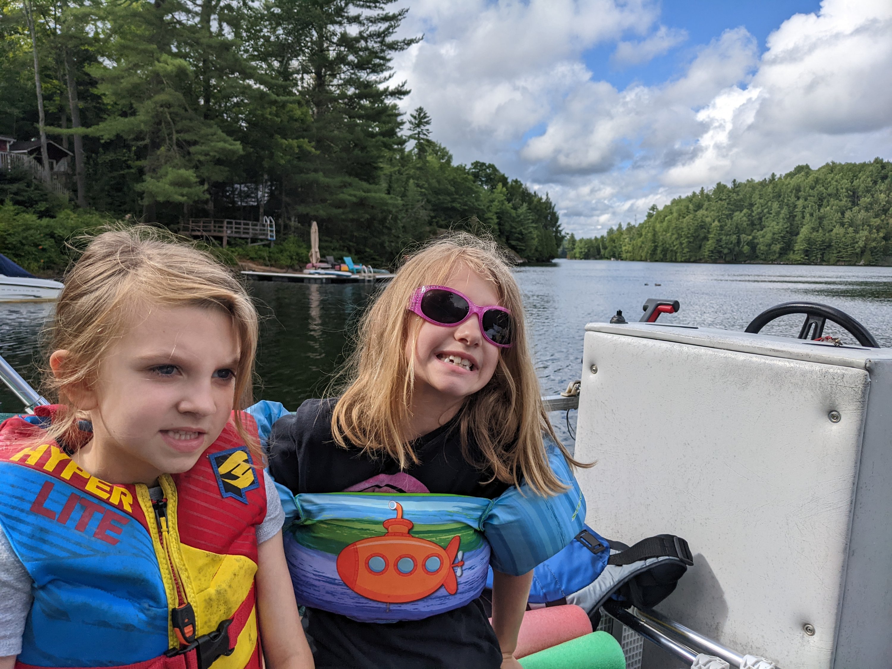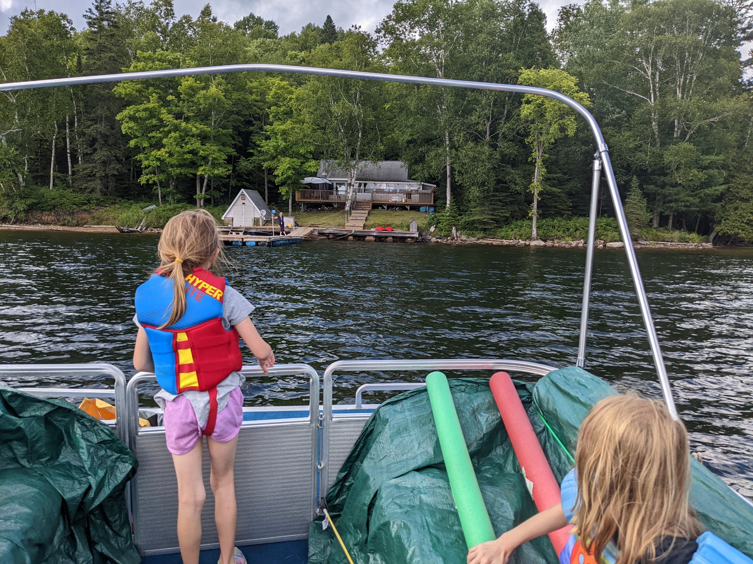 July 24, 2022: Woohoo! We made it! After three years we finally made it back to the cottage. Grandma was waiting for us on the dock! Of course, grampa wasn’t there to meet us, but he found a silly way to say hi. When we pulled up to the dock, all the power was off! Silly grampa! It rained and right before bed we saw a beautiful rainbow. Then the power came back on. That sure is a silly way to say hi, but grampa always was a bit of a jokester. Let’s get this vacation started!