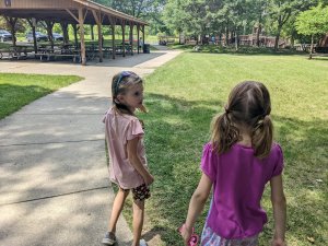 August 16, 2022: We didn’t like Sick Week, but we did like having daddy home all the time. Now that things are going back to normal, he keeps going on work trips and it’s not fair. We keep ourselves busy though when he’s gone. A playdate with a friend at the park is the perfect distraction.
