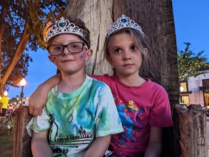 August 19, 2022: When daddy goes out on work trips, he misses a lot of fun things at home. But he came home really late/early this morning, so we made sure to do some cool things. You know. Cuddling, lunch date, dinner date with friends, ice cream, Music in the Park, meeting Miss Michigan…..super fun stuff! Oh, and as an early anniversary surprise we cleaned our rooms, our bathroom, and gave mommy and daddy a spa day! Whew!