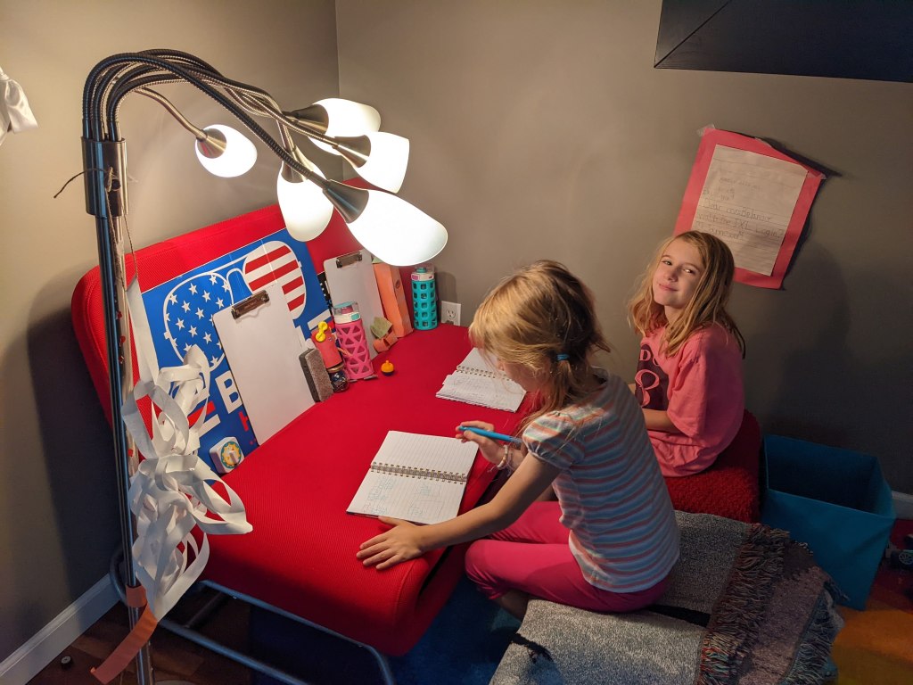 August 25, 2022: We are getting excited for school, but we’re also worried we’ll be out of practice. Jameson had a good idea to play school today. Maybe it will help us get back in the groove. Not sure it’s going to help unless the construction guys get a move on.