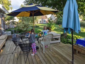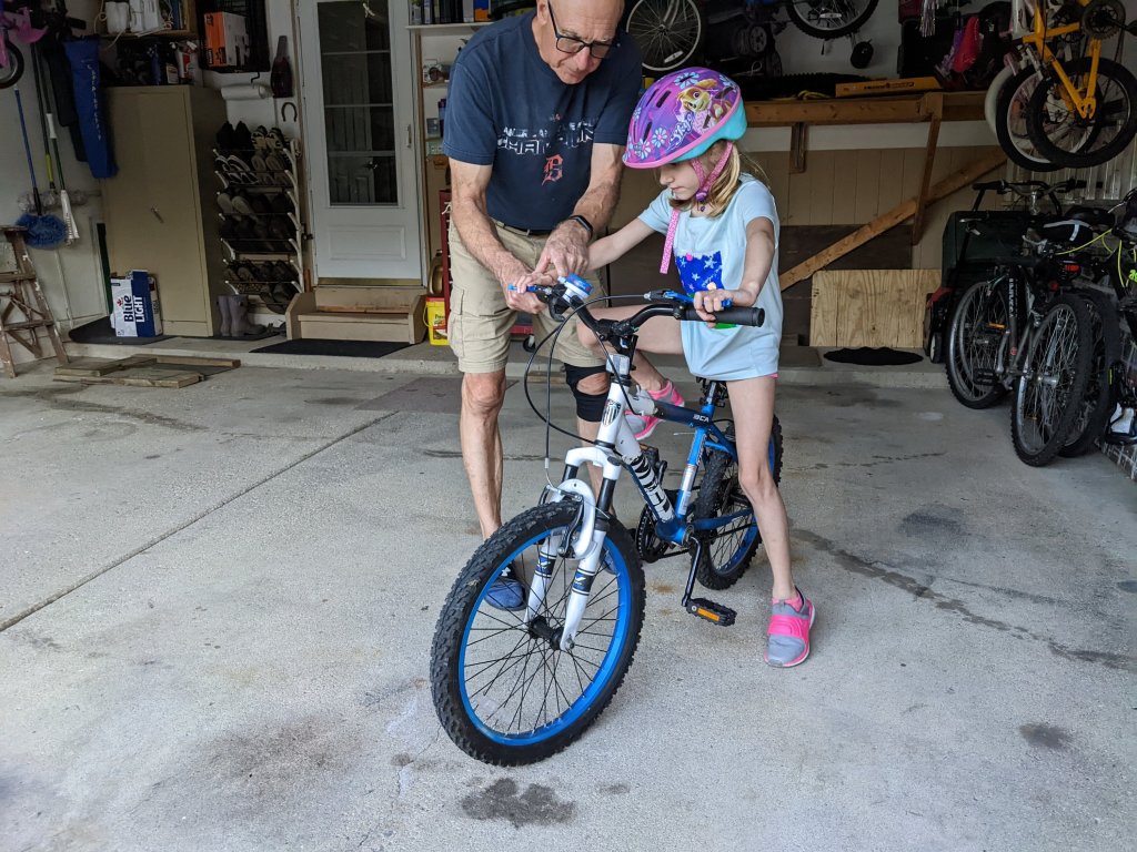 September 13, 2022: Mommy’s got our cold. She’s not feeling great. Grammie and Papa offered to pick us up and take us to their house after school. Of course, we thought that would be a wonderful idea! Papa let us play Legos on the deck and we took a bike ride. Jameson rode the BIG bike and it had no pedal brakes!!!! She was pedalling backwards and using her hands to stop! Crazy.