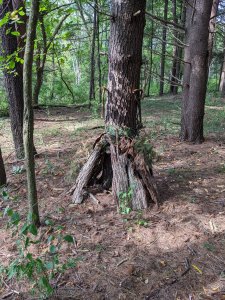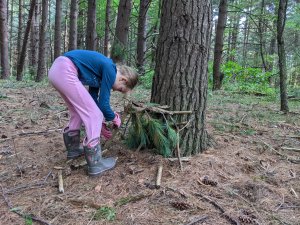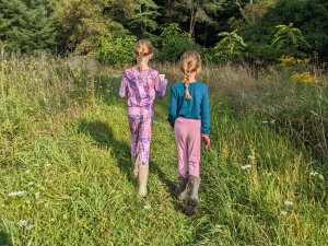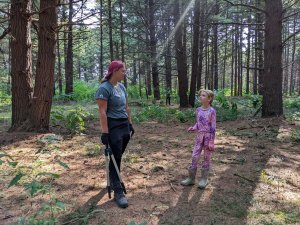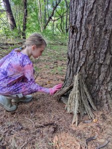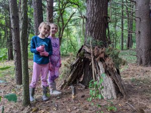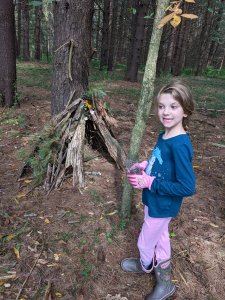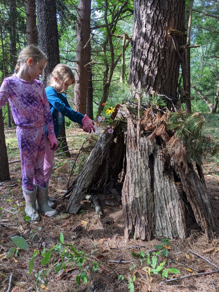 September 17, 2022; When we woke up and mommy said we had to go with her to a workday event, we were not very happy. We wanted to relax and watch TV. But then she explained we would be building fairy houses in a pine tree forest AND it would take an hour drive so we could watch a movie in the car! YES! This is a workday event we can get behind. The grown-ups cut invasive species and we built beautiful fairy houses. We also got to meet Ally, cousin Sydney’s friend from high school. She is really nice! We can’t wait to go back. Our friends JJ and Isaac would love this place!