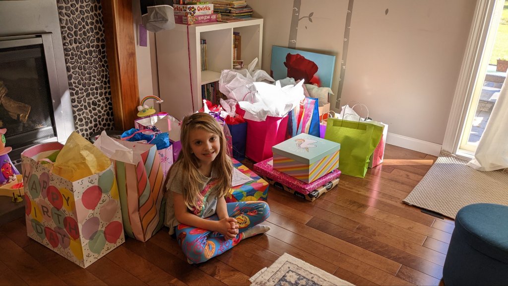 October 1, 2022: Yup. Jameson was right. My party at Abrakadoodle was awesome and there was nothing to worry about. We had a great time painting and playing, and now I have another mountain of presents to play with…..almost all unicorn and rainbow. My friends know me so well!