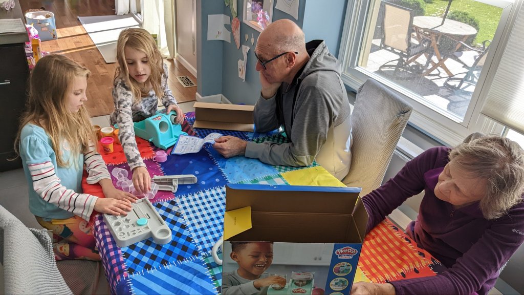 October 2, 2022: Mommy and daddy went on a date to the Lions game. This is the first one since sick week started! We were so happy they went because we got to play with my new toys AND my new dessert Play-Doh set when grammie and Papa came to watch us! Yes! Yes! Yes! (The Lions lost, again–doh!)