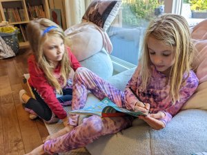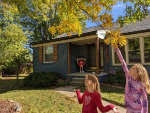 October 3, 2022: We know what holiday or season is coming when we look at our neighbor’s yard. She puts up new decorations and coordinating lights for every single one! She used to change the decorations in secret under the cover of night, but now she is retired and switches them during the day. Now we even catch her sometimes on our way to school! We have found a few favorite decorations over the years. During Halloween we love her sparkly ghost the most. It’s so cute!