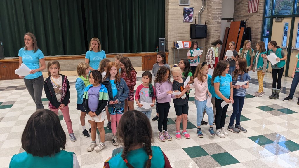 October 11, 2022: All the Girl Scouts from Bird school gathered at the middle school for song night. It was nice to sing, but it was even better to play with our friends and have cider and donuts!