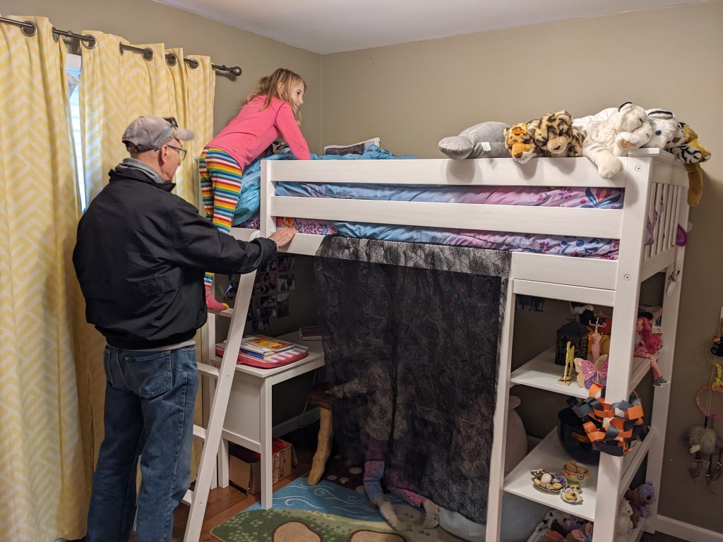 October 29, 2022: I’ve been asking for a loft bed for a long time. I used logic to explain to mommy how I’d have more room for organizing and homework. I said please. I was patient. Mommy and daddy put my bed together while we were at grammie and papa’s last night. It’s amazing!! Next we need to get one for Fin!