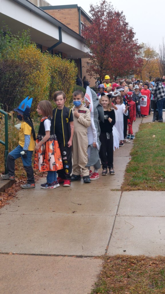October 31, 2022: I think Halloween on school nights is the best! We got to do a costume parade at school. Then a bunch of our friends met up to go trick or treating together! I’m not even sure it’s even about the candy anymore.