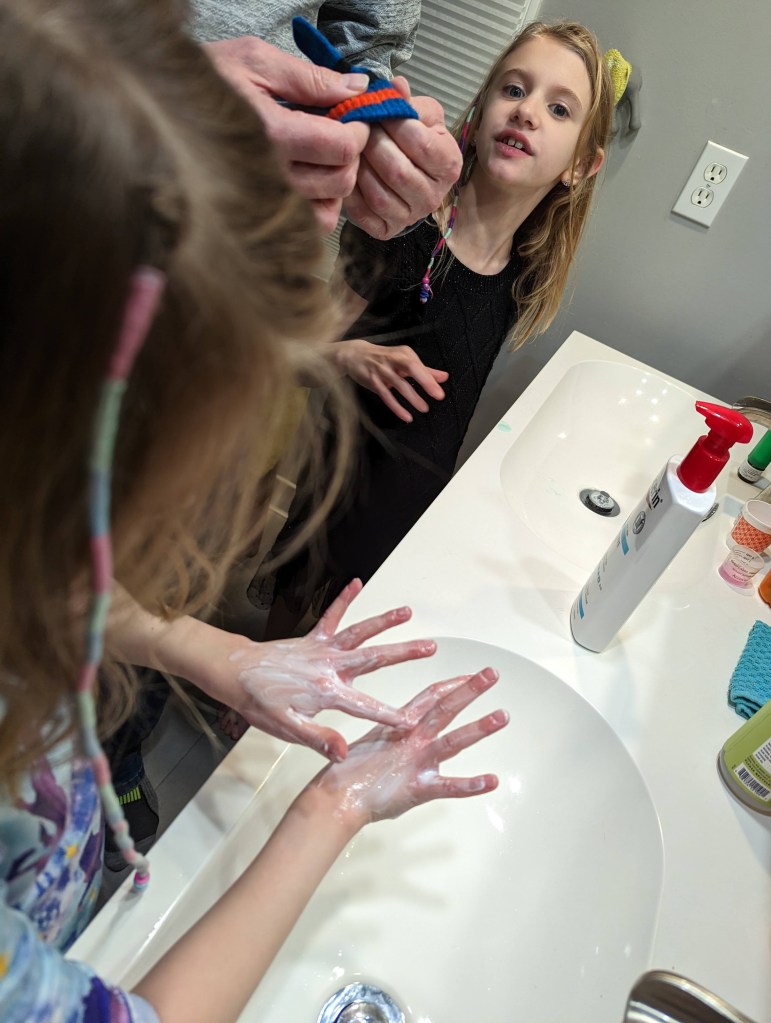 February 1, 2023: I thought dad was going crazy. My hands were so dry, my skin felt burning. It hurt so much I wanted to cry. I told daddy I needed a bandaid. Instead, he got out lotion and gloves. Um, oooooookay. Then he didn’t put a little lotion on my hands, he put a LOT. Too much. Then he had me put gloves on over all the lotion. It made me laugh it was so silly. But guess what? It worked! My hands felt better a few hours later. Crazy old man was right!