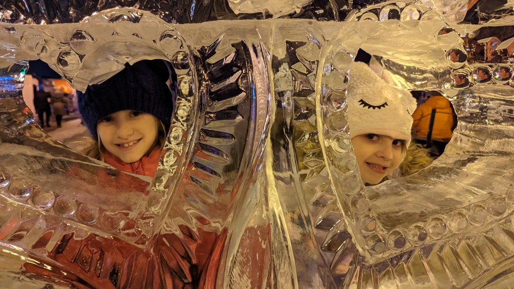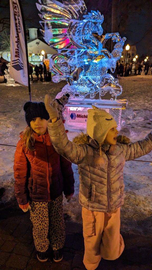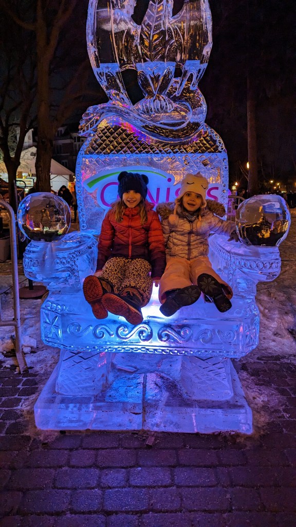 February 4, 2023: The ice festival is happening downtown this weekend. We almost missed it because mommy can’t walk that far. Then she suggested we go with daddy right before bed while she ice her foot. Great idea! We saw a bunch of cool carvings and told mommy all about it when we got home. In hindsight, mommy probably could have iced her foot AND seen the carvings.