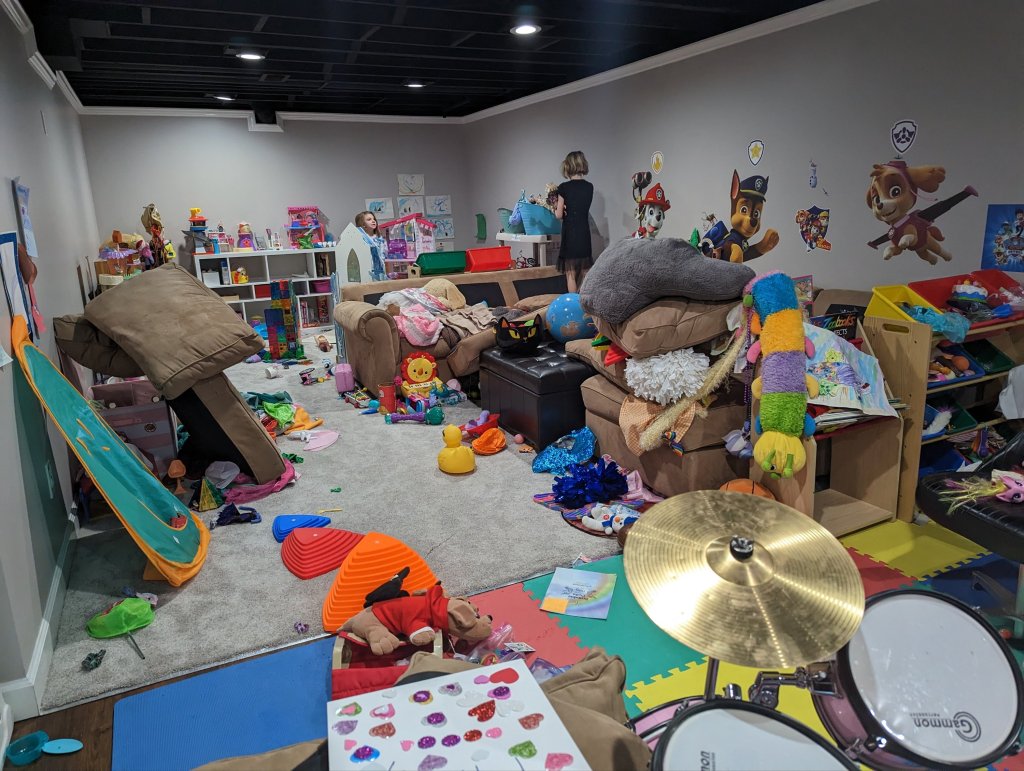 February 18, 2023: Well, it was bound to happen. Mommy finally made it downstairs! Yay! Except she saw how messy it was….oops! What did she expect? We couldn’t play upstairs so she didn’t trip on our toys, so we kinda let things go. Lucky for us, it only takes a couple of hours and some good Taylor Swift songs to get it clean!