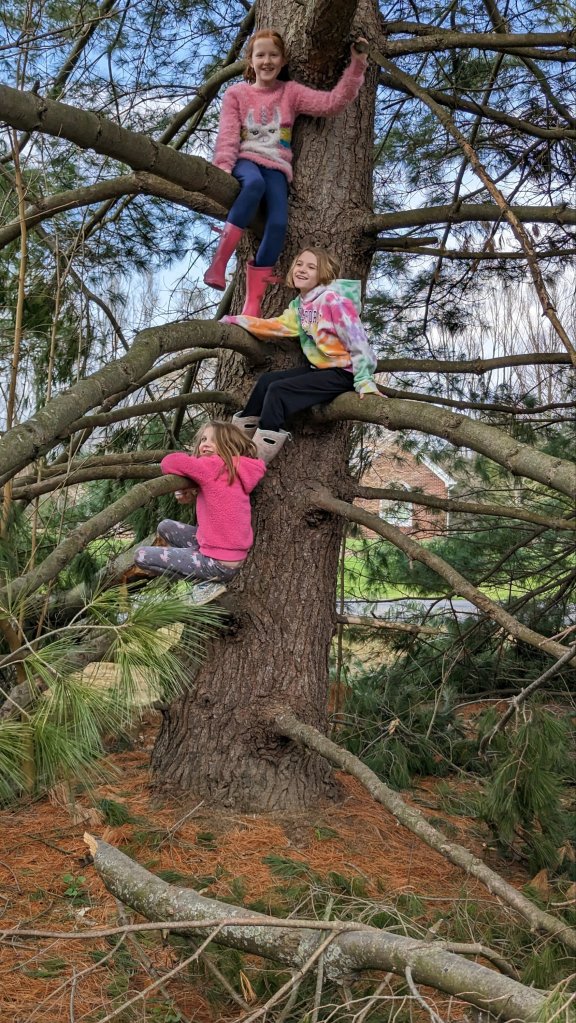 April 8, 2023: What a great Saturday! I got to go to my friend’s house this afternoon. We played outside and I climbed a tree! I have never done that before. It was so cool! Fin didn’t get to stay, but she did get to play for a little before I went home. She really wanted to learn how to climb too. We’ll have to practice more this summer!