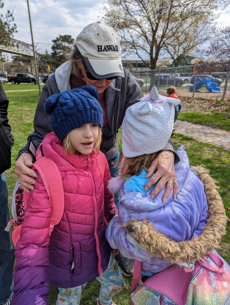 April 19, 2023: With daddy on his work trip and mommy busy in the school garden, we were excited to stay and play at school. UNTIL grammie and papa showed up to take us to their house. It’s nice when you have lots of fun options. See ya, mommy!